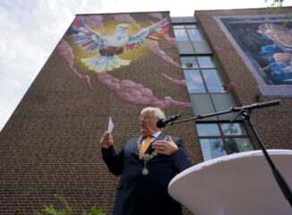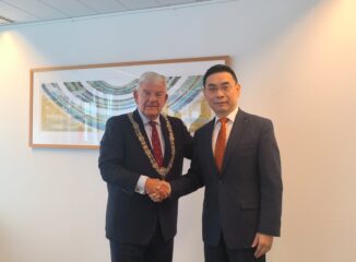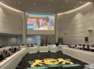 Ochtendwandel in de wijk. Met nul graden en een stevige wind is het koud onderweg. Woon in de loop van de ochtend de opening bij van het National Spring festival in het Atrium van het Stadhuis. Doe dat samen met Carola Hulhoven (kabinetszaken), Marco Weijers (communicatie) en Jonne Catshoek (directie Veiligheid).