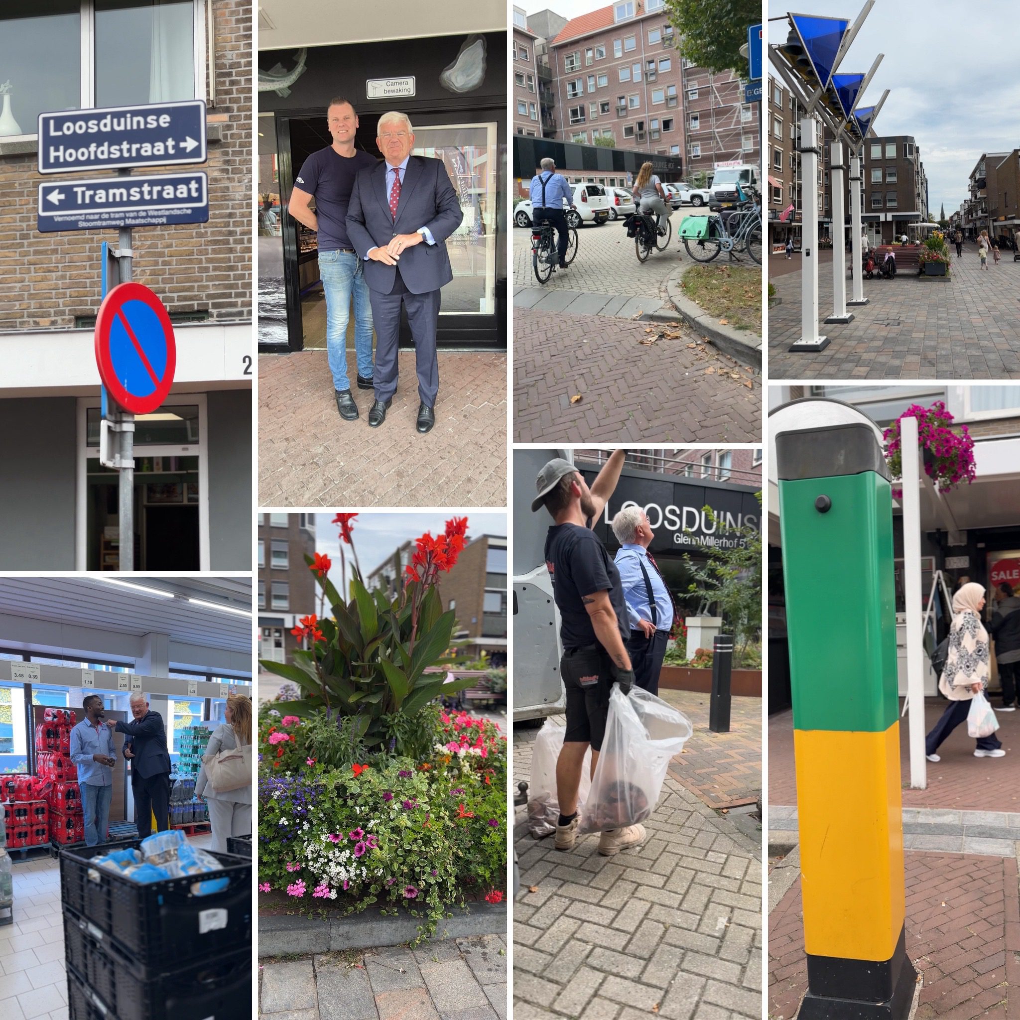 De middag staat voor een groot deel in het teken van een werkbezoek aan Loosduinen en Kijkduin. Loosduinen, nu één van de acht stadsdelen, is een voormalig tuindersdorp dat in 1923 onderdeel werd van Den Haag. Op de plek van de oude kern is in de jaren ’70 een winkelcentrum gebouwd. Met voor ieder wat wils, en dat was vanmiddag voor mij een gebakken visje als lunch bij visspecialist van Eeden aan de Loosduinse Hoofdstraat. Nuttig deze met stadsdeeldirecteur Corinne, veiligheidsregisseur Remko en bestuursadviseur Nathalie. Spreek uitvoerig met eigenaar Kevin, hij deed dit jaar mee met ‘Vlaggetjesdag on tour’. Z’n zaak verwerkt per dag zo’n 300 kilo vis. Begroet enkele bewoners en ondernemers, waaronder goede bekende Wouter van Elst.