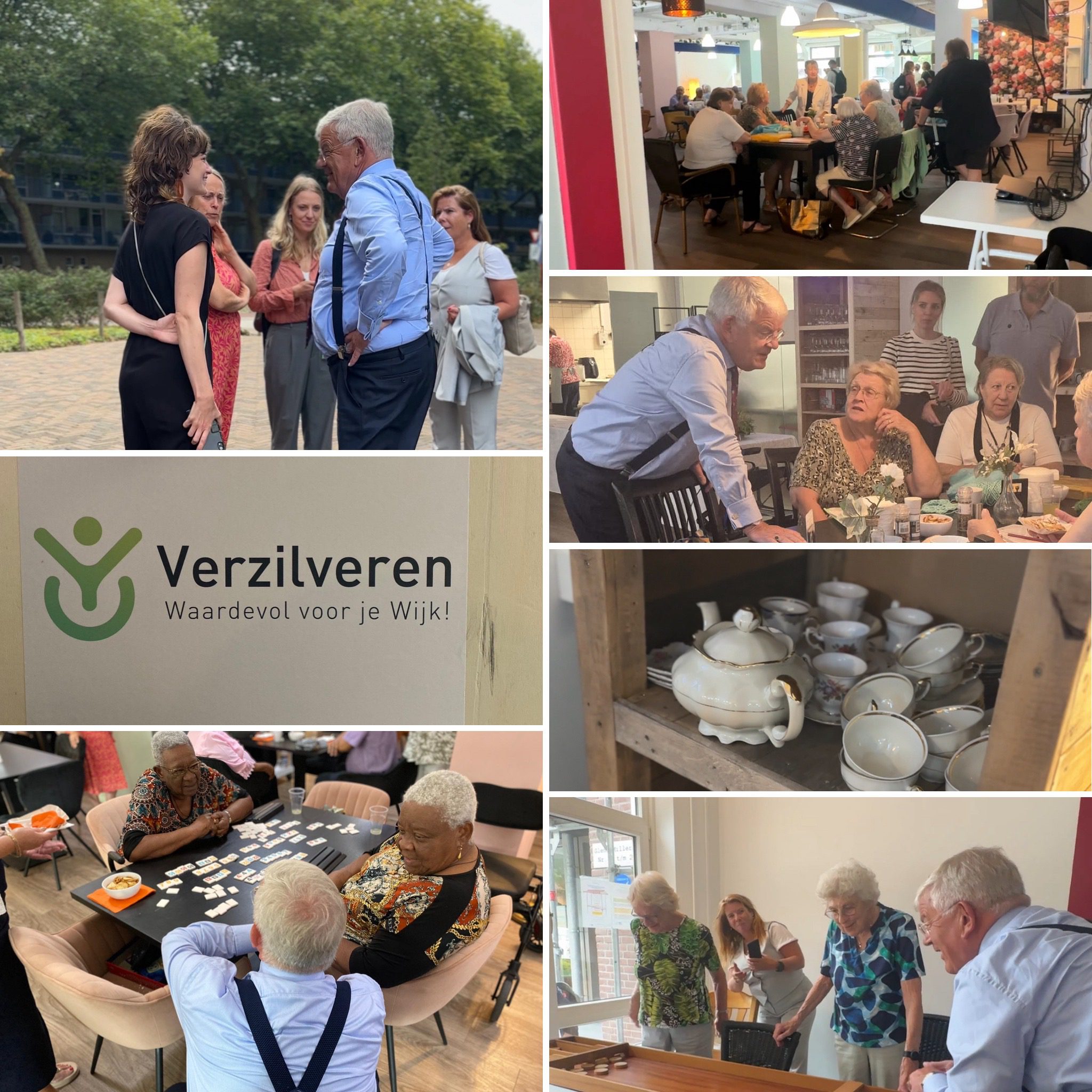 Fietsen met z’n allen naar stichting Verzilveren aan het Glenn Millerhof, waar oprichter Nancy Krul en Pjer Wijsman (voorzitter Commissie Loosduinen) mij ontvangen. Ontmoette Nancy afgelopen Koningsdag, waar zij mij attendeerde op de activiteiten van de stichting. Kom ze nu, zoals beloofd, met eigen ogen bekijken: van bloemschikken en sjoelen tot poffertjes bakken voor bezoekers en bewoners van het verzorgingstehuis. Gezellig allemaal.