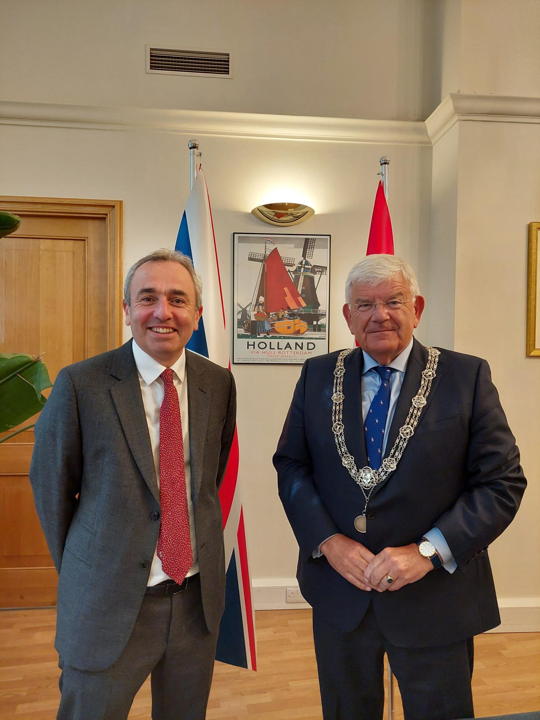 Fiets heen en weer naar het zwembad. Start voor het werk de dag met een bezoek aan de Britse ambassade aan het Lange Voorhout. Doe dat samen met Camilla (kabinetszaken). Maak kennis met Z.E. Chris Rampling, vanaf volgende week officieel de Britse ambassadeur in Nederland. Goed om alvast kennis te maken. Ben onder de indruk van zijn Nederlands. Leuk gesprek in het gezelschap van Boukje van den Eijnden.