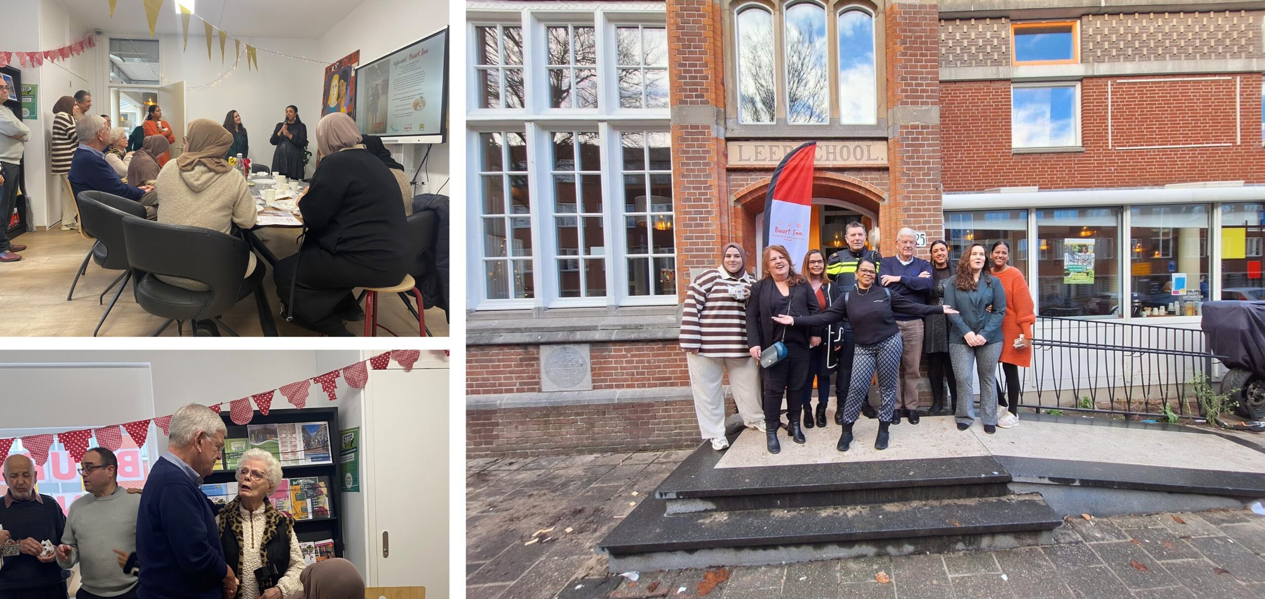 Haast me dan richting de Schilderswijk in stadsdeel Centrum. Ga op uitnodiging langs bij de informele jaarafsluiting van de wijkwinkel Buurt Inn aan de Van Dijckstraat. Buurt Inn is een informatie- en ontmoetingsplek waar bewoners op een laagdrempelige manier informatie en ondersteuning kunnen krijgen. Onder anderen de opbouwwerkers jeugdwerk Anya en Senne en vrijwillig ‘verbinder’ Farina ontvangen mij allerhartelijkst. Senne heet de aanwezigen welkom en vertelt over de oprichting en de activiteiten van de Buurt Inn. Farina deelt haar ervaringen met het vrijwilligerswerk. Dat doet zij naast haar betaalde baan en de zorg voor haar drie kinderen. Krijg bij vertrek enkele, door buurtbewoners zelf bereide lekkernijen mee voor thuis.