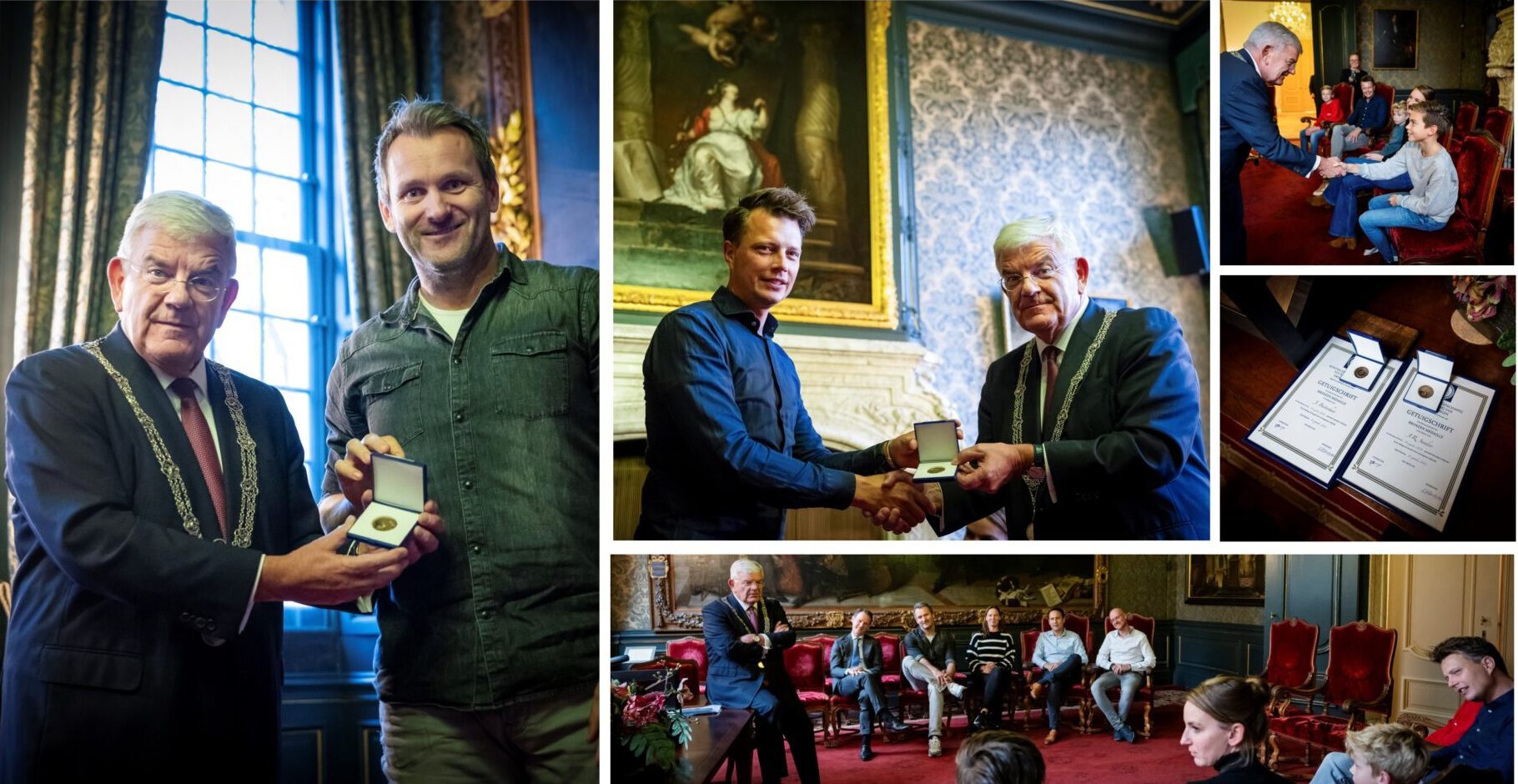 Ga aan het eind van de middag richting het Oude Stadhuis aan de Dagelijkse Groenmarkt. Reik namens de Koninklijke Maatschappij tot Redding van Drenkelingen (KMRD) een bronzen medaille uit aan twee mannen die afgelopen zomer een heldendaad verrichtten. Jan Buitenhuis en Jeroen Sanders waren vrijdagavond 18 augustus op het Haagse Zuiderstrand toen ze zagen dat twee personen door een snelstromende mui in de problemen raakten. Met gevaar voor eigen leven en met een – van een andere omstander geleende – surfplank gingen zij de zee in en redden zo het leven van een 10-jarig jongetje en zijn te hulp geschoten vader. De bijna-drenkelingen werden vervolgens opgevangen door de hulpdiensten die ook snel ter plaatse waren. Overhandig aan Jan en Jeroen de versierselen die horen bij de bronzen medaille en een getuigschrift van de KMRD.