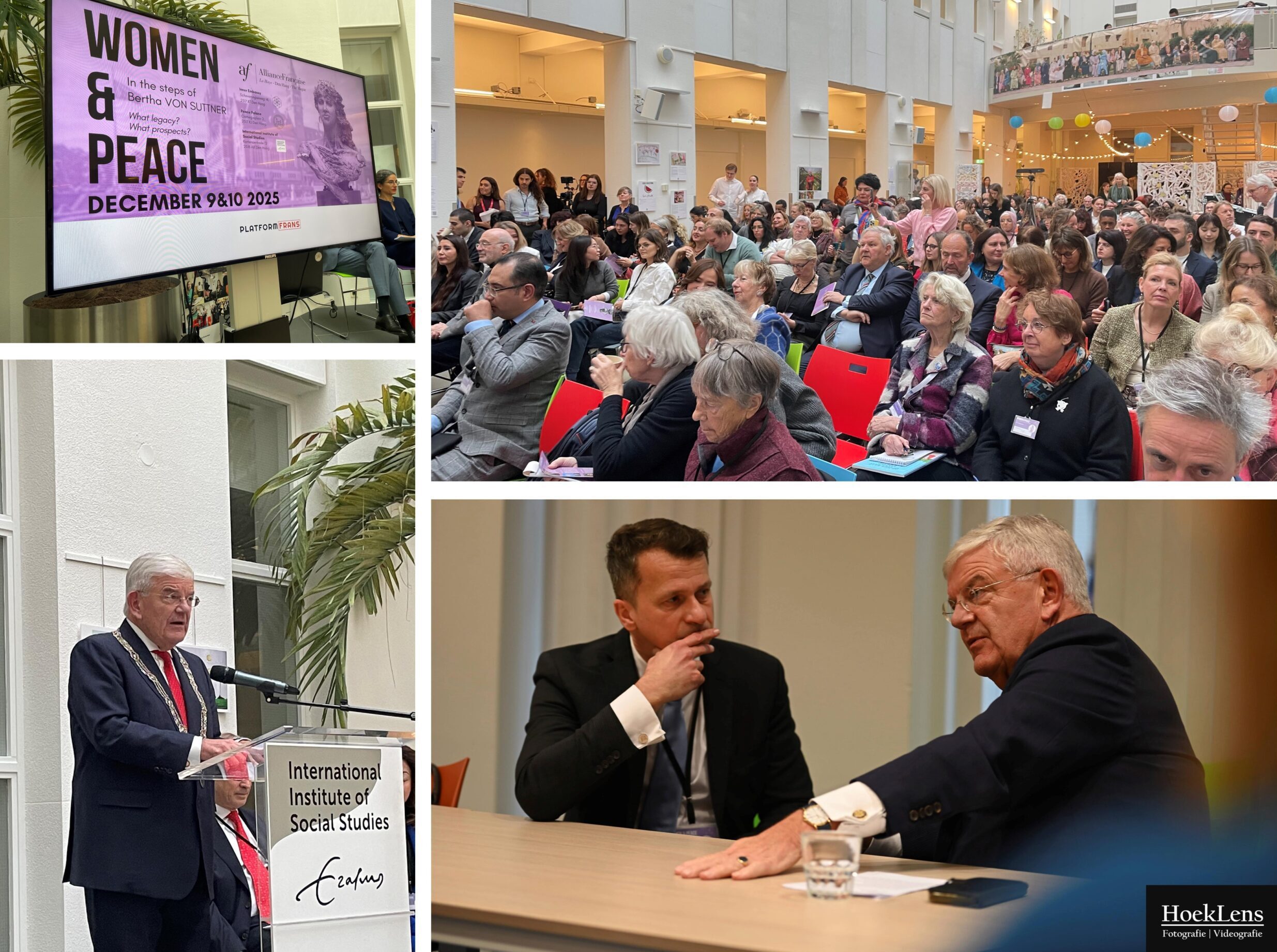 Hélène Pichon, Mireille de Jonge en Alexandrien van der Burgt ontvangen mij bij aankomst allerhartelijkst. Draag met een toespraak bij aan de opening, net als de ambassadeurs Z.E. François Alabrune (Frankrijk), H.E. Corinne Cicéron Bühler (Zwitserland), Z.E. Engelbert Theuermann (Oostenrijk) en Z.E. René Miko (Tsjechië). Ook Guila Clara Kessous (Peace Ambassador en UNESCO Artist for Peace) en Roy Huijsmans (Deputy Rector Educational Affairs van het ISS) dragen vanaf het podium bij aan de start van de conferentie.