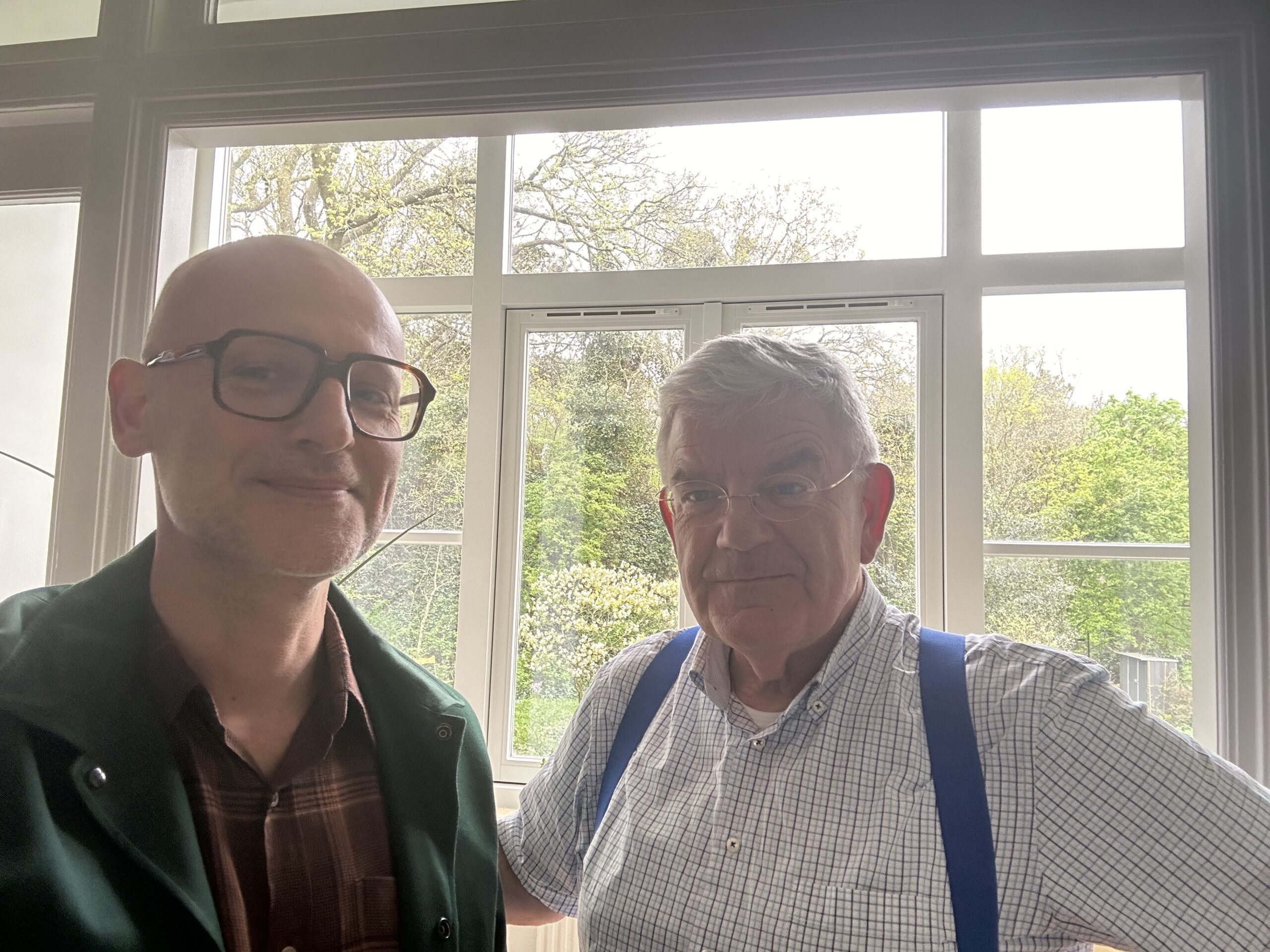 Voorzie, ’s middags terug thuis in Den Haag, de schilders Maikel en André van een kopje koffie. Ze werken gestaag door. Het weer is hier beter dan in Noord-Holland vanmorgen. Ontvang Onno Hesselink, een goede bekende van heel lang geleden. Onno was het (enige en dus favoriete) neefje van de dames Hesselink (oftewel ’tante’ Nel en ’tante’ Alie). Het neefje is inmiddels een 56-jarige succesvolle ondernemer en woonachtig in het Belgische Tervuren (bij Brussel).