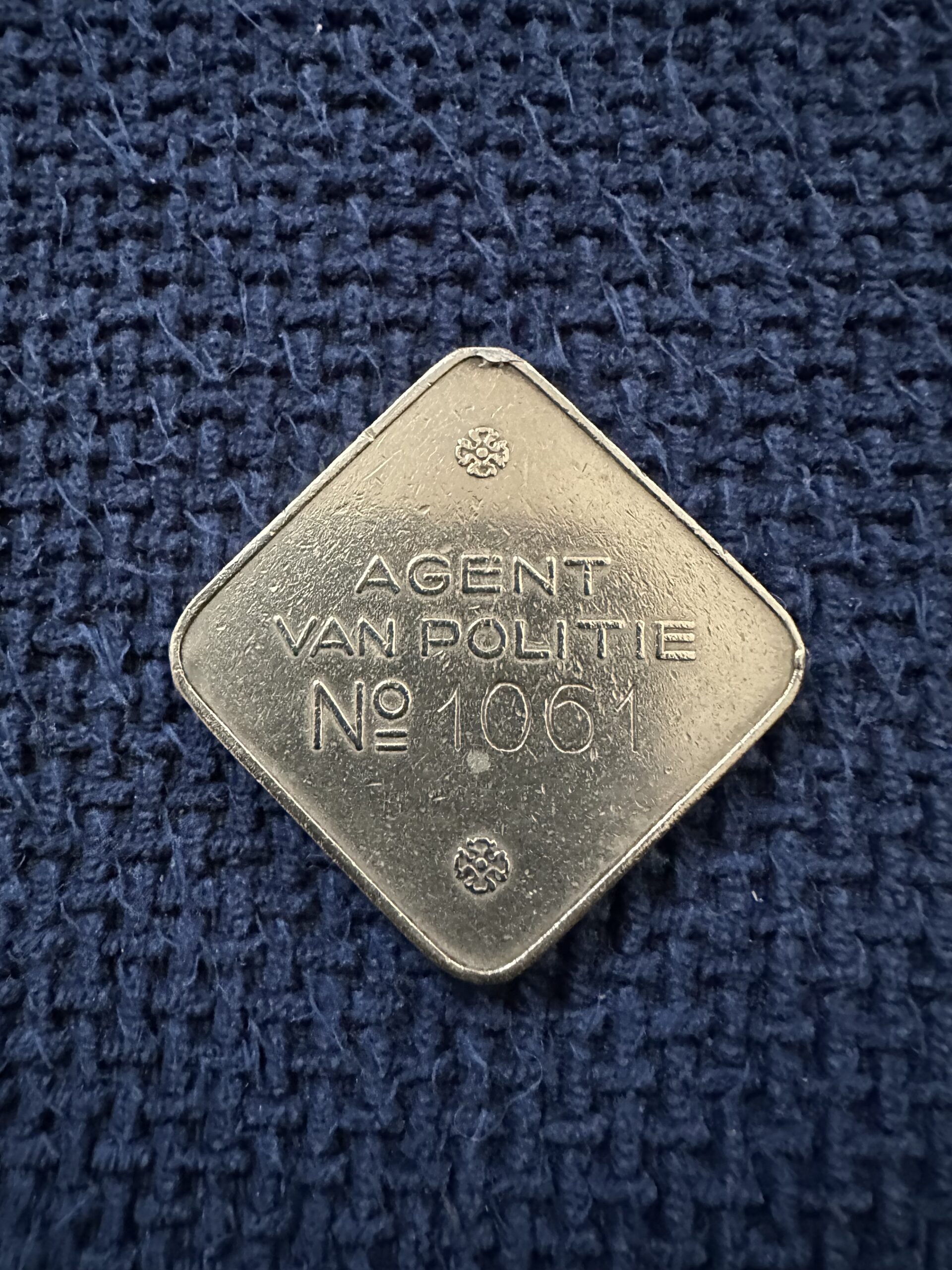 Ontvang van naamgenoot Jan een penning van de Haagse gemeentepolitie van vlak na de oorlog. ‘Agent van politie nr 1061’ staat erop.