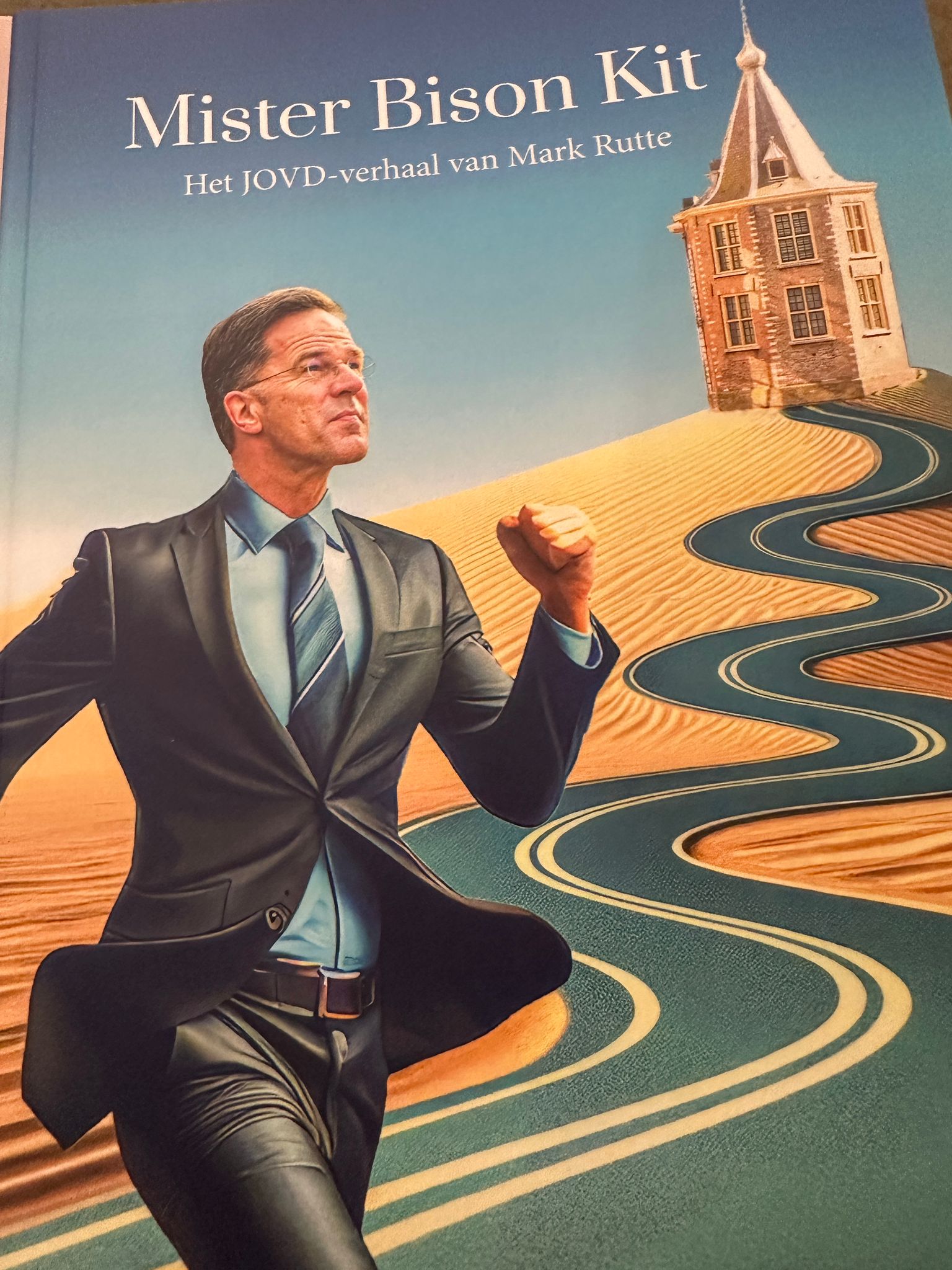 Lig om zes uur in het zwembad. Heerlijk. Voor het eerst weer sinds veertien dagen. Fiets – het is koud en mistig – naar het Stadhuis. Praat in de collegekamer bij met Chris Schaapman, directeur Nationaal Programma Zuidwest. Wethouder Martijn Balster is helaas door ziekte verhinderd, maar zijn medewerker Mark Venekamp neemt deel. Bespreken enkele actualiteiten en kijken vooruit. Praat bij met Romein de Klerk. De JOVD‘er is inmiddels weer in de studiebanken gekropen en geniet er volop van. Krijg een exemplaar van een afscheidsbundel voor Mark Rutte ten geschenke (‘Mister Bison Kit: het JOVD-verhaal van Mark Rutte’). ” … De eerste JOVD-premier van Nederland. Waar begon het voor hem? Wat dreef hem? Voor dit boek doken we in zijn geschiedenis en onderzochten we zijn JOVD-tijd. Het is ons cadeau en bedankje aan Mark. De opbrengst van het boek zal worden gedoneerd aan de Haagse Dierenambulance …”.