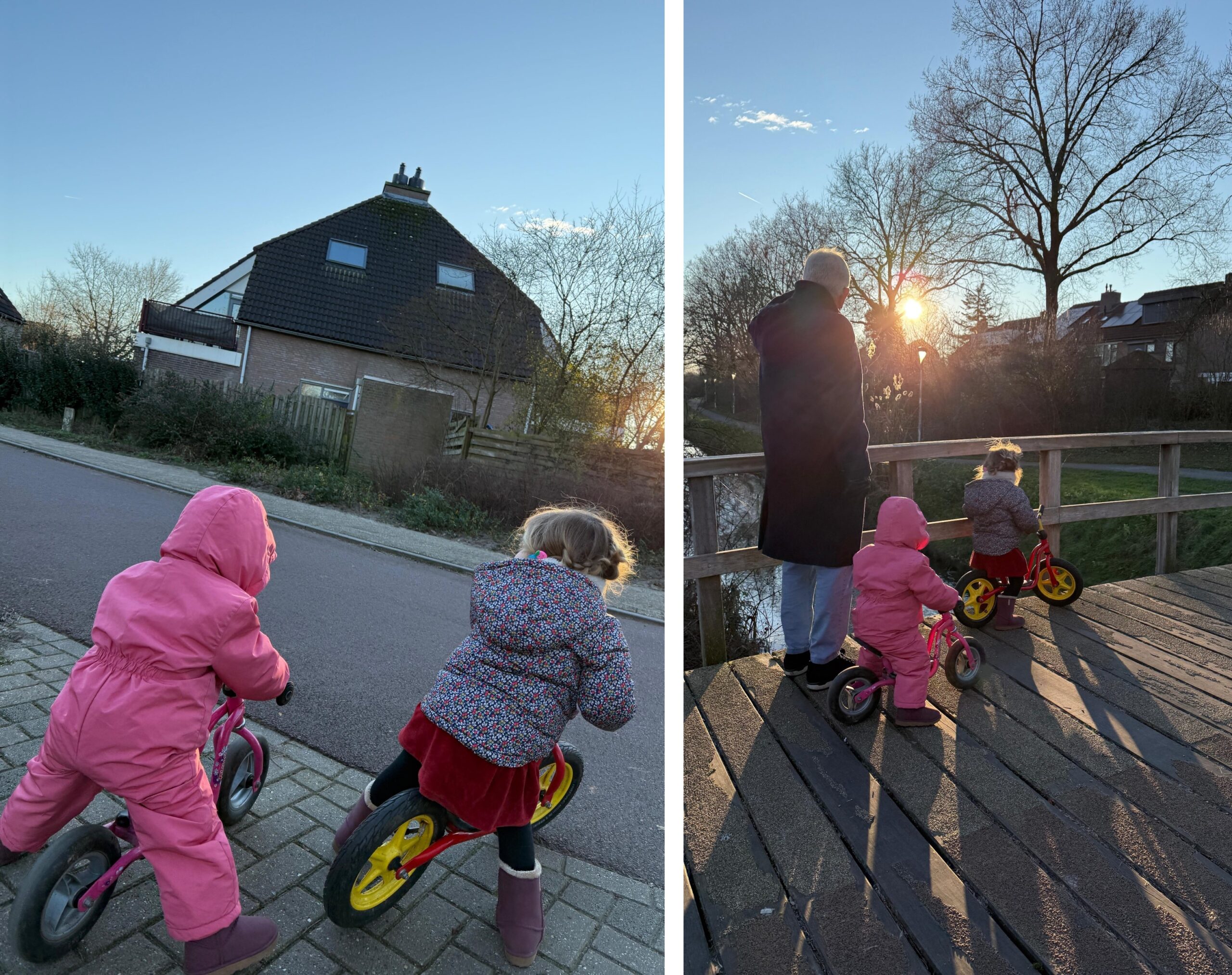 De meisjes – m’n kleindochters Florien en Jolein – hebben het naar hun zin. “Opa, verhaaltje voorlezen. Nog een keer.” Maken in de loop van de middag een wandeling met de kleintjes in de omgeving. Lekker in de kou (en in de zon).