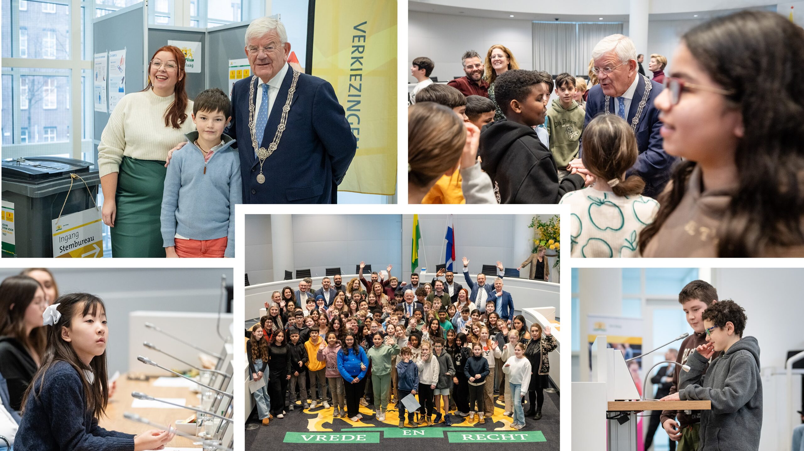 Leerlingen mogen vooraf hun vragen doorgeven en vervolgens deze zelf in ‘de raad’ stellen aan de aanwezige gemeenteraadsleden en wethouders. Leerlingen van basisschool De Drie Linden (Segbroek), de Meester Schabergschool (school voor nieuwkomers, Centrum) en OBS Benoordenhout (Haagse Hout) zijn vandaag aan de beurt en stellen de meest uiteenlopende vragen. Sluiten af met een groepsfoto door fotograaf Martijn Beekman. Altijd leuk om aan bij te dragen.