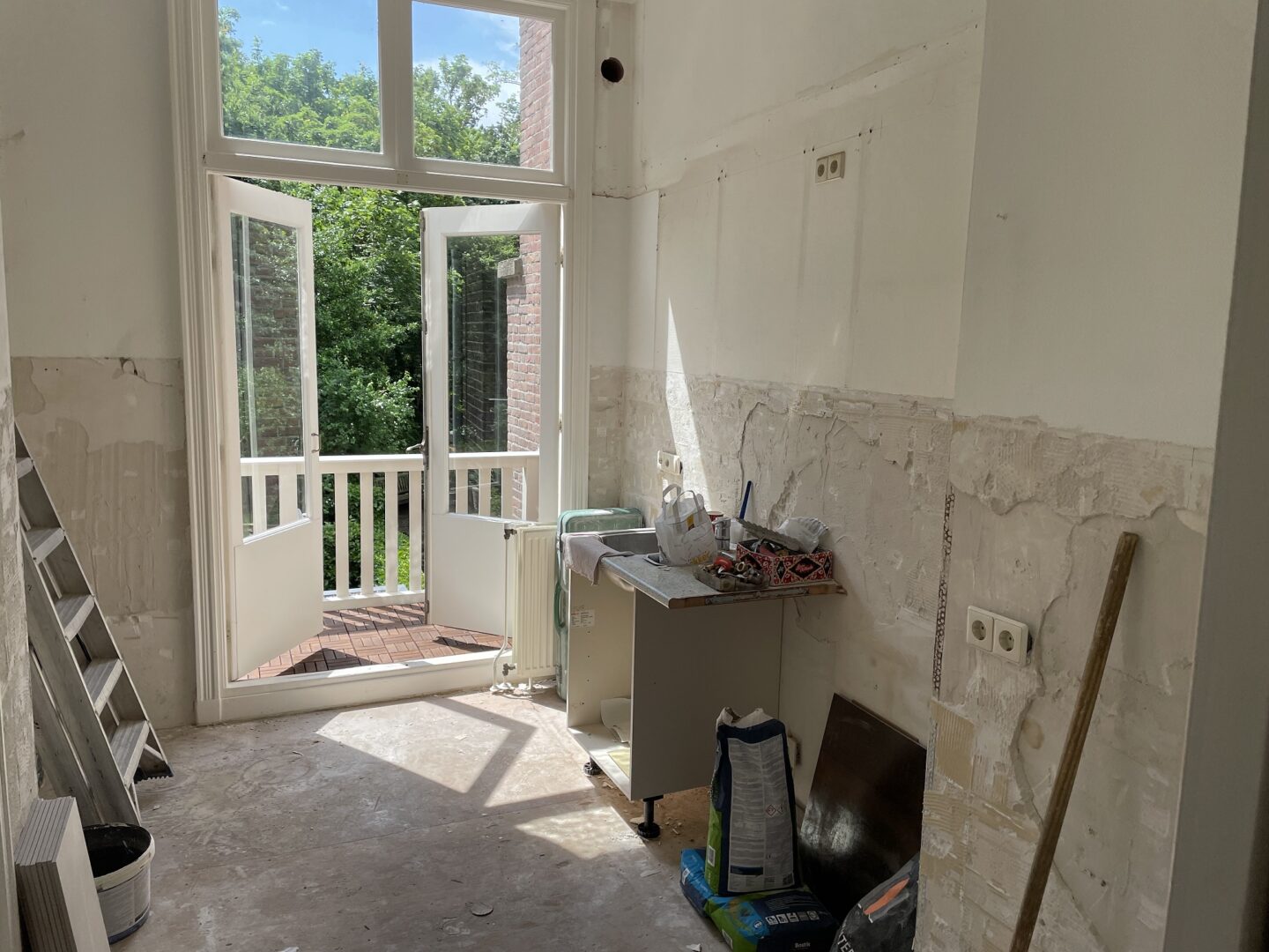 Fiets in alle vroegte naar mijn (nieuwe) bovenwoning. Drink er een kopje koffie met Ab, Gerard en Arie. Zij gaan ook vandaag weer aan de slag om m’n toekomstige ‘thuis’ nog fraaier te maken.