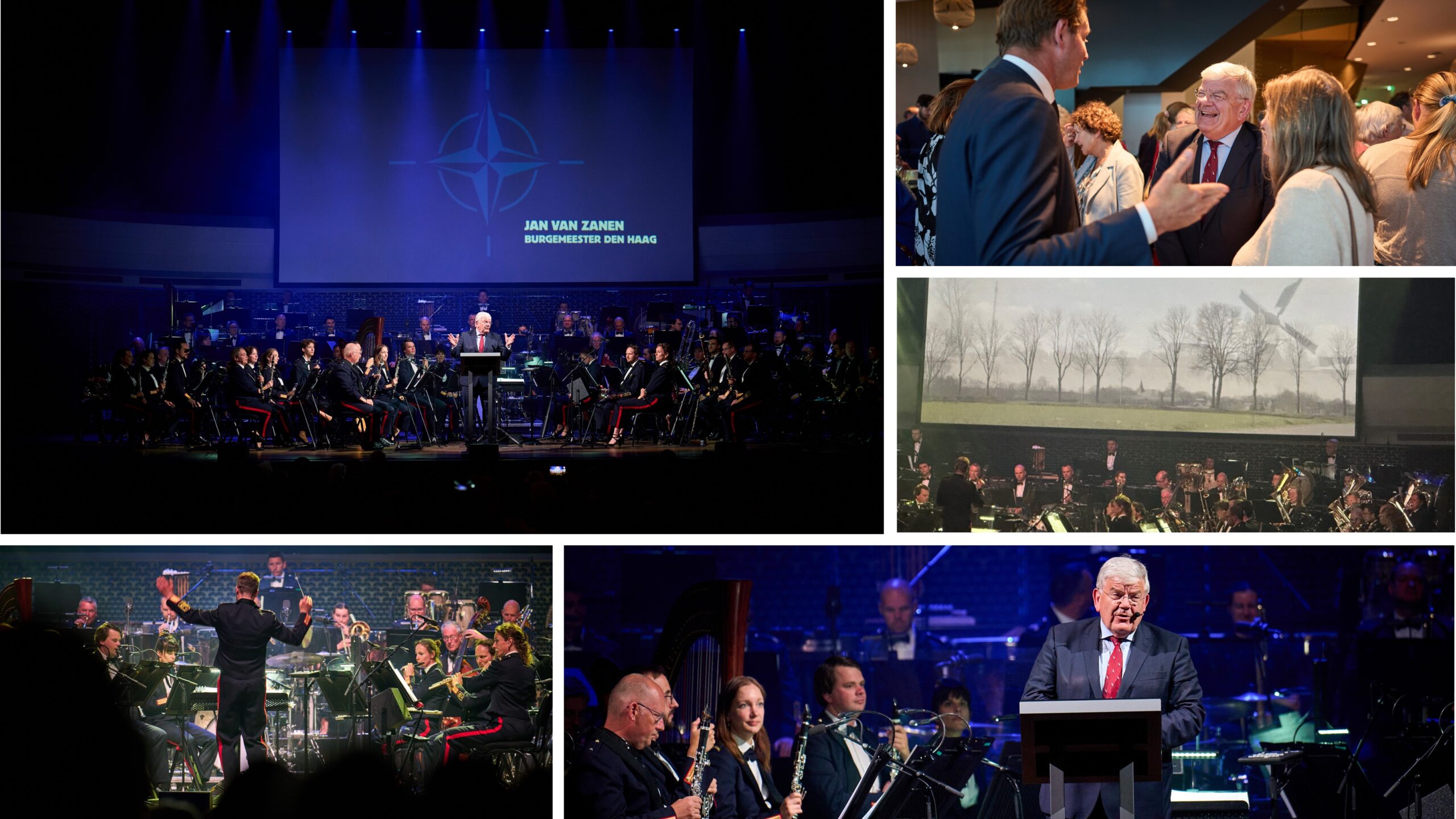 De rest van de avond staat in het teken van een bezoek aan Amare. Omwonenden van het Statenkwartier in de nabijheid van het World Forum zijn uitgenodigd voor een concert, georganiseerd door het ministerie van Defensie om hen te bedanken voor hun begrip en betrokkenheid. Naast een muzikaal programma (‘Vrijheid in beeld’) is er bij een informatiebalie gelegenheid vragen te stellen over de NAVO-top. Verwelkom, net als secretaris-generaal van Defensie Maarten Schurink, de ruim 1.000 gekomen omwonenden met een toespraak. Geniet van het concert van de Koninklijke Militaire Kapel ‘Johan Willem Friso’, gedirigeerd door Majoor Frans Aert-Burghgraef.