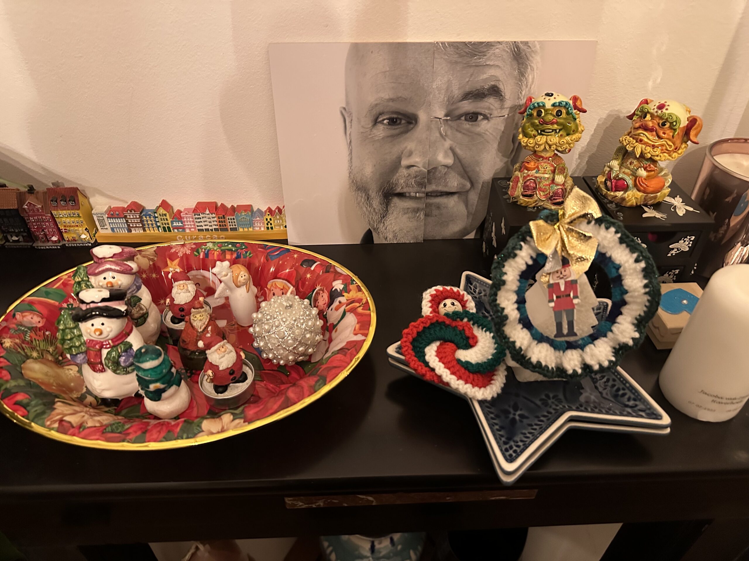 Iedereen zingt enthousiast mee. Stadsdeeldirecteur Loosduinen Corinne den Heijer deelt op Instagram een terugblik op het bezoek. Geef, terug thuis, de haakwerkjes van Joke van der Velden (“Ik werkte 44 jaar als verpleegkundige in Leyenburg wat nu het HagaZiekenhuis is”) een mooie plek op een van mijn schoorsteenmantels.