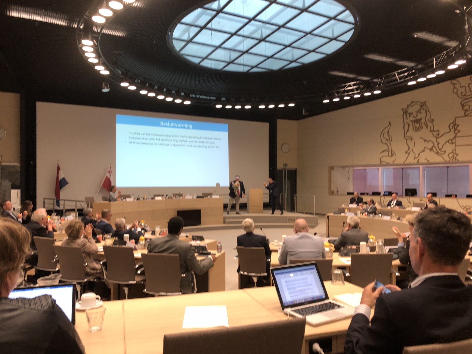 Werk de rest van de ochtend op mijn werkkamertje op zolder. Heb veel te lezen en voorbereiden. Inmiddels heeft facilitair medewerker Faisel een dienstfiets gebracht. Top. Stap aan het begin van de middag op de fiets richting het Provinciehuis aan de Archimedeslaan. Woon de vergadering bij van het Strategisch Beraad Veiligheid. De ministers Kajsa Ollongren en Ferd Grapperhaus nemen aan het beraad deel. Fiets na afloop meteen naar huis en ga door naar het Domplein. Zet Theo van Wijk in het zonnetje voor zijn vrijwilligerswerk voor onder andere DOMunder. Mag hem namens het gemeentebestuur een Maartenspenning overhandigen. Stephanie Stobbelaar (kabinetszaken) begeleidt me.