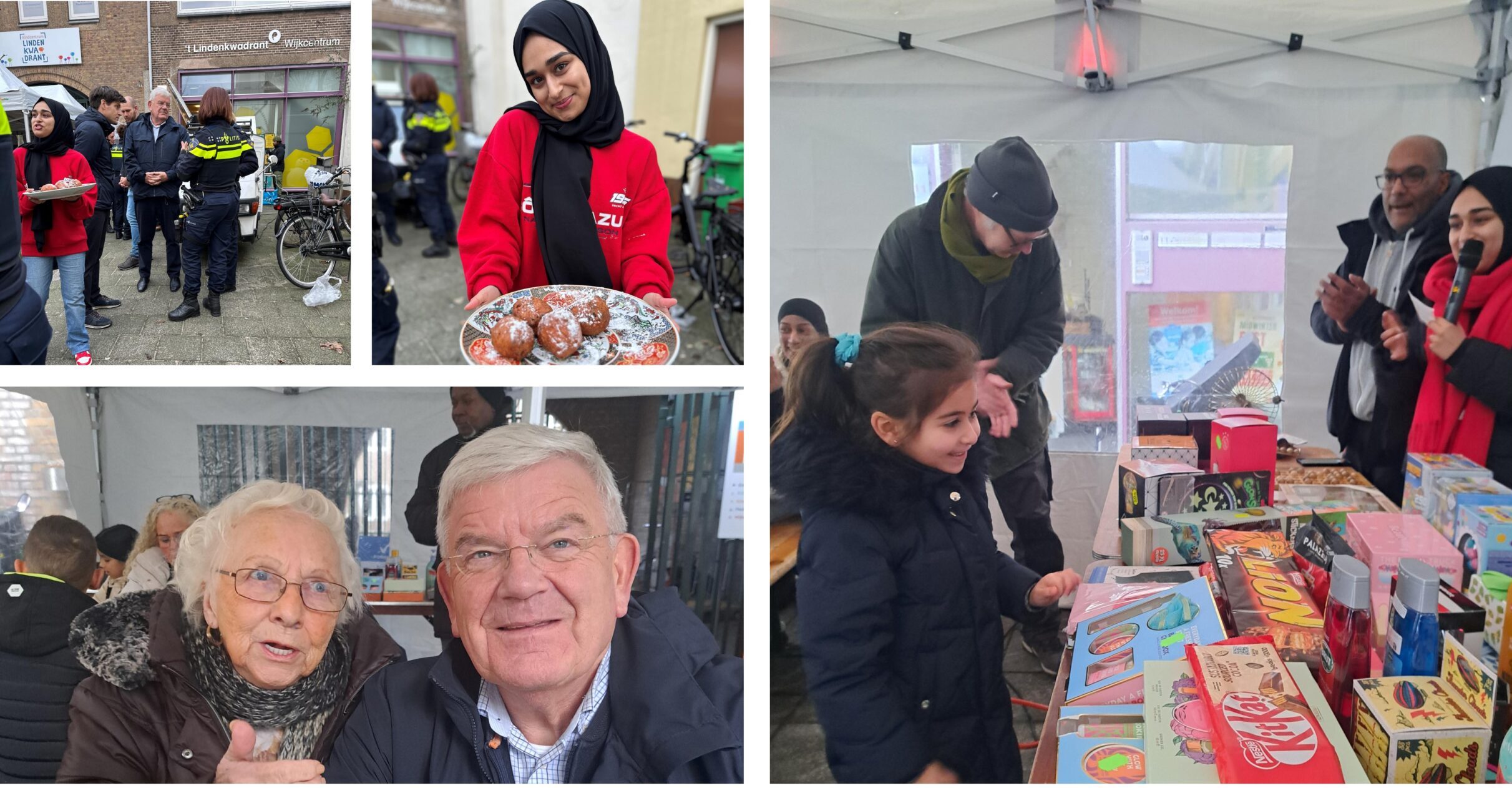 Het derde bezoek is aan het wijkcentrum ’t Lindenkwadrant aan de 2e Braamstraat in de Heesterbuurt voor een bijeenkomst voor bewoners in het kader van ‘Segbroek on Tour’. Eerst was het plan aan het Valkenbosplein de bijeenkomst te doen, maar ook hier gooit de harde wind roet in het eten. Ben al een paar keer eerder in het centrum geweest, onder andere voor een bezoek aan het stembureau. Veiligheidsregisseur Wilco Quist leidt de weg en stelt me voor aan Marijelle van Delft, coördinator van Wijkz. Buiten is een tent snel opgebouwd voor een beetje beschutting tegen de wind. Ook voor koffie is gezorgd. Begroet de aanwezige wijkbewoners, waaronder Annie van der Haak. Neem binnen een kijkje in de keuken waar hapjes worden klaargemaakt voor de bewoners. Ondertussen is in de tent de bingo opgestart. Neem plaats naast vitale tachtiger Annie voor de eerste ronde, de hoeken van de kaart. Heb geen succes, maar een meisje heeft meer geluk en zoekt een mooi cadeau uit. Spreek ten slotte met de wijkagenten Mathea en Joyce die bij de explosies aan de Tarwekamp goed werk hebben geleverd.
