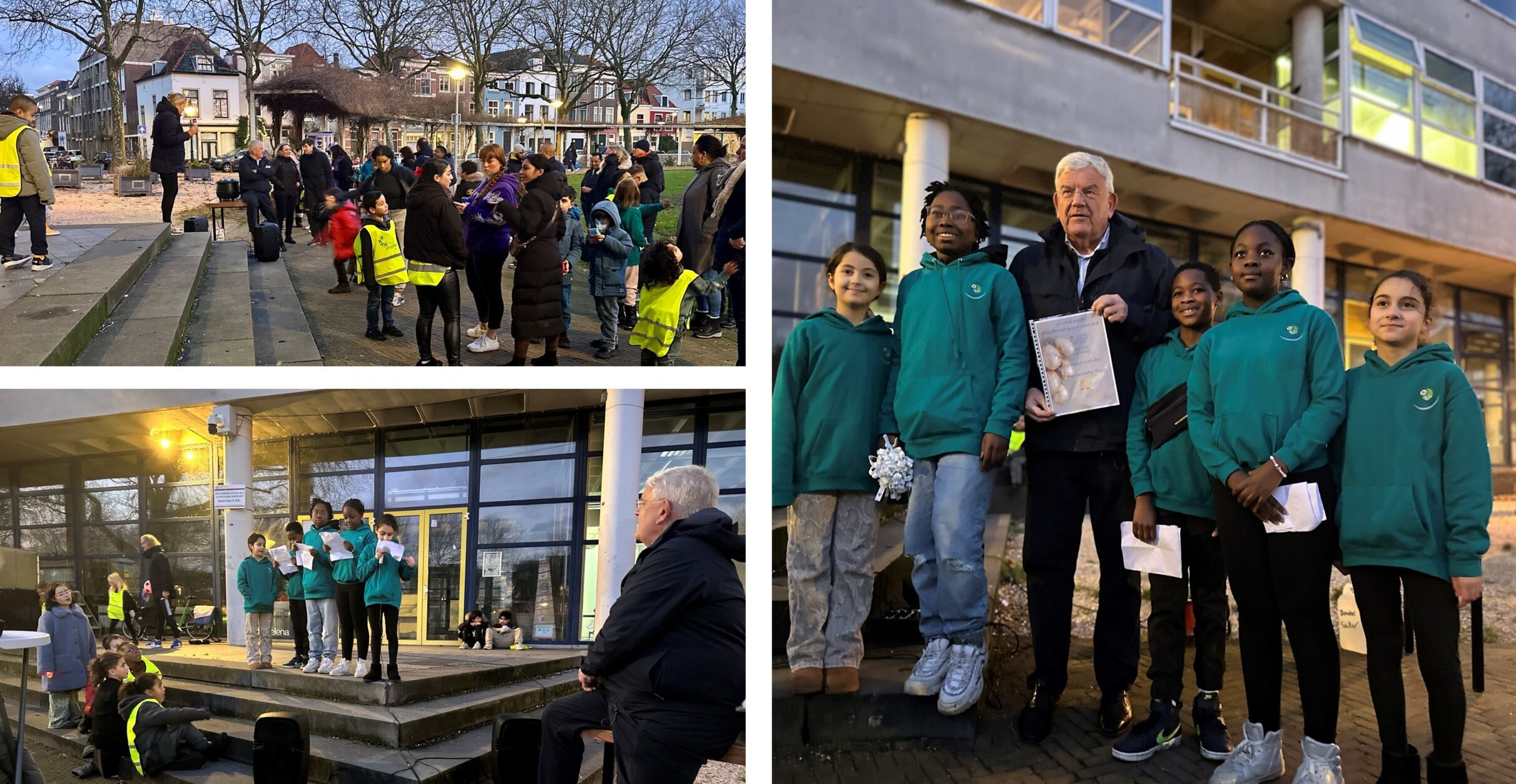Vertrek richting het Helena van Doeverenplantsoen. Woon er een activiteit bij van de Jeugdhaven van stichting Jeugdwerk. Zij houden de kinderen bezig met allerlei activiteiten en dat laten ze vol trots zien. Veiligheidsregisseur Dilara Çakir wacht me op ter hoogte van het Johan de Witt College aan de Glasblazerlaan en neemt me mee. Zie het opgeknapte plantsoen met meer zicht en minder donkere plekken. Leden van de kinderraad Vreedzaam Den Haag spreken me toe. Onder anderen Josephina en Sama vertellen over wat ze allemaal gedaan hebben zoals flessenacties, zomerkamp en opruimacties. Ze wensen de aanwezigen toe dat we voor elkaar zorgen. Een mooie gedachte voor het nieuwe jaar. Dank de medewerkers Peter Holsteijn (stichting Jeugdwerk) en Ageeth Smith (coördinator vreedzame wijk) voor hun inzet.