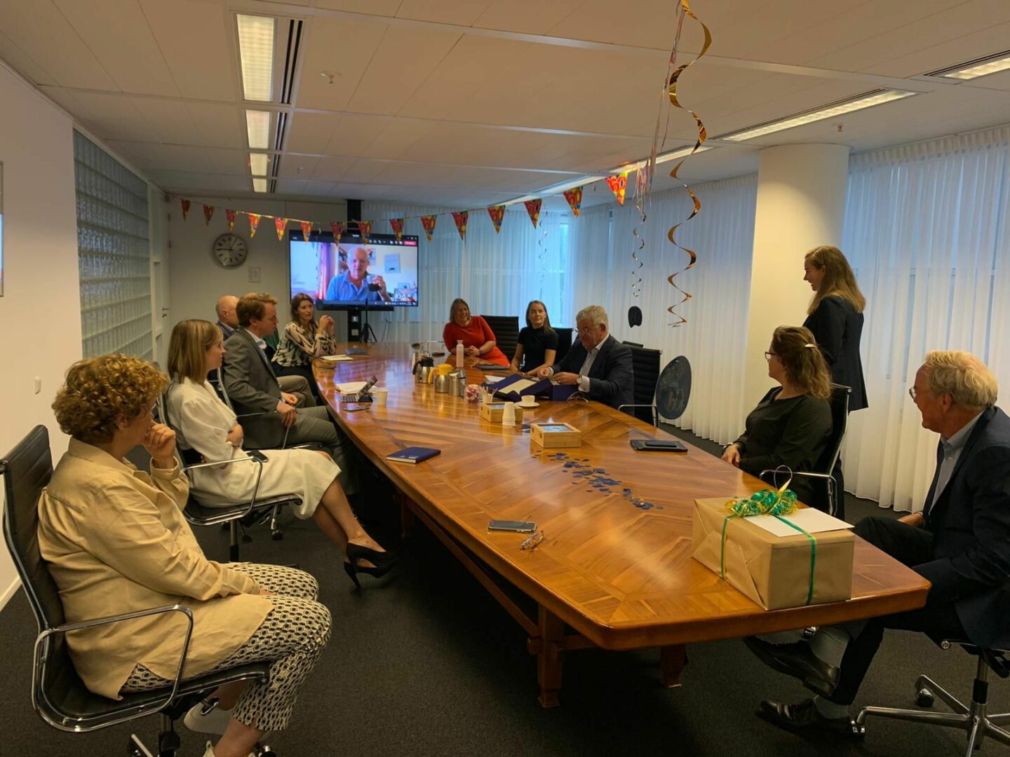 Maak aan het eind van de ochtend kennis met de griffier (‘registrar’) van het International Residual Mechanism for Criminal Tribunals (IRMCT) en voorvechter van mensenrechten Abubacarr Tambadou. Deze, in zowel Den Haag als in Tanzania (Arusha) gevestigde VN-organisatie, houdt zich bezig met de afronding van het Joegoslavië en het Rwanda tribunaal. Abubacarr is vorig jaar door Time magazine genoemd op de lijst van ‘100 most influential people of 2020’. Åsa Rydberg van der Sluis (deputy Chief of Registry) vergezelt de griffier. Pepijn Zaagman (directie Internationaal) is ook aanwezig. Praat aan het begin van de middag kort bij met communicatieman Ralph van Essen.