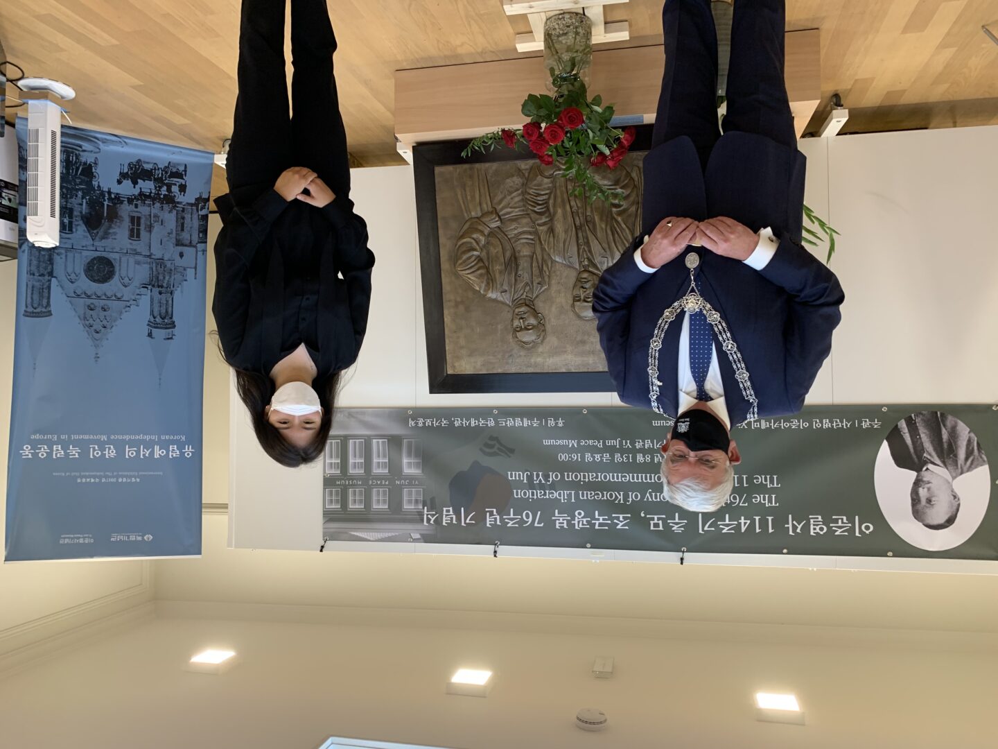 Lever in de loop van de middag de (huis)sleutels in bij m’n huisbaas in de omgeving van de Mauritskade. Heb met plezier ruim een jaar in het appartement aldaar gewoond. De plicht roept weer. Ben op uitnodiging van Lee Kee Hang en Song Chang-ju aanwezig bij het 25-jarig jubileum van het Yi Jun Peace museum aan de Wagenstraat. Het jubileum staat mede in het teken van 76 jaar onafhankelijkheid van Zuid-Korea en 114 jaar na het overlijden van Yi Jun. Yi Jun was een Koreaanse jurist en diplomaat die in namens de Koreaanse Keizer Sunjong 1907 naar Den Haag afreisde. Hij vormde mede de delegatie voor de Tweede Vredesconferentie. Helaas, ver weg van huis, haalde hij de conferentie niet en overleed hij in zijn hotelkamer aan de Wagenstraat. Op diezelfde plek werd 25 jaar geleden het Yi Jun Peace museum opgericht. Een emotievolle geschiedenis. Begroet de ambassadeur van Zuid-Korea, Z.E. Yeondoo Jeong. Maak kennis met twee leden van het nationale parlement, Eung Cheon Cho (Democratic Party) en Hun Seung Lee (People Power Party). Ben vereerd dat de parlementariërs – respectievelijk van een regeringspartij en een oppositiepartij – de moeite hebben genomen aanwezig te zijn. Dominee Kim Dong Min leidt de jubileumbijeenkomst. Na het Koreaanse volkslied, spreken gastheer Lee, de ambassadeur en ik zelf enkele welkomstwoorden uit. Parlementslid Cho spreekt. Namens de hooggeleerde Takamitsu Muraoka wordt een tekst voorgedragen. Tenslotte dragen ook saxofonist Kim Dong Gi (muzikaal) en Park Jong Hak (voorzitter van The Korean Society in the Netherlands) met een ‘Hurray Trio’ bij aan de bijeenkomst. Er worden foto’s gemaakt. Ga zelf na afloop op de foto met Kim Yoo Lim, de voorzitter van de Koreaanse studentenvereniging in Nederland (KSAN).