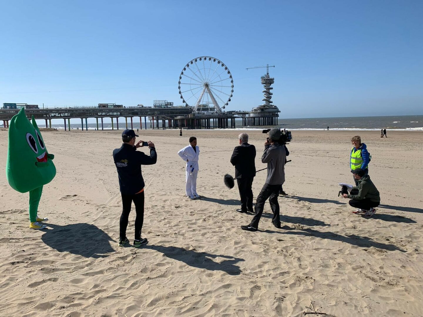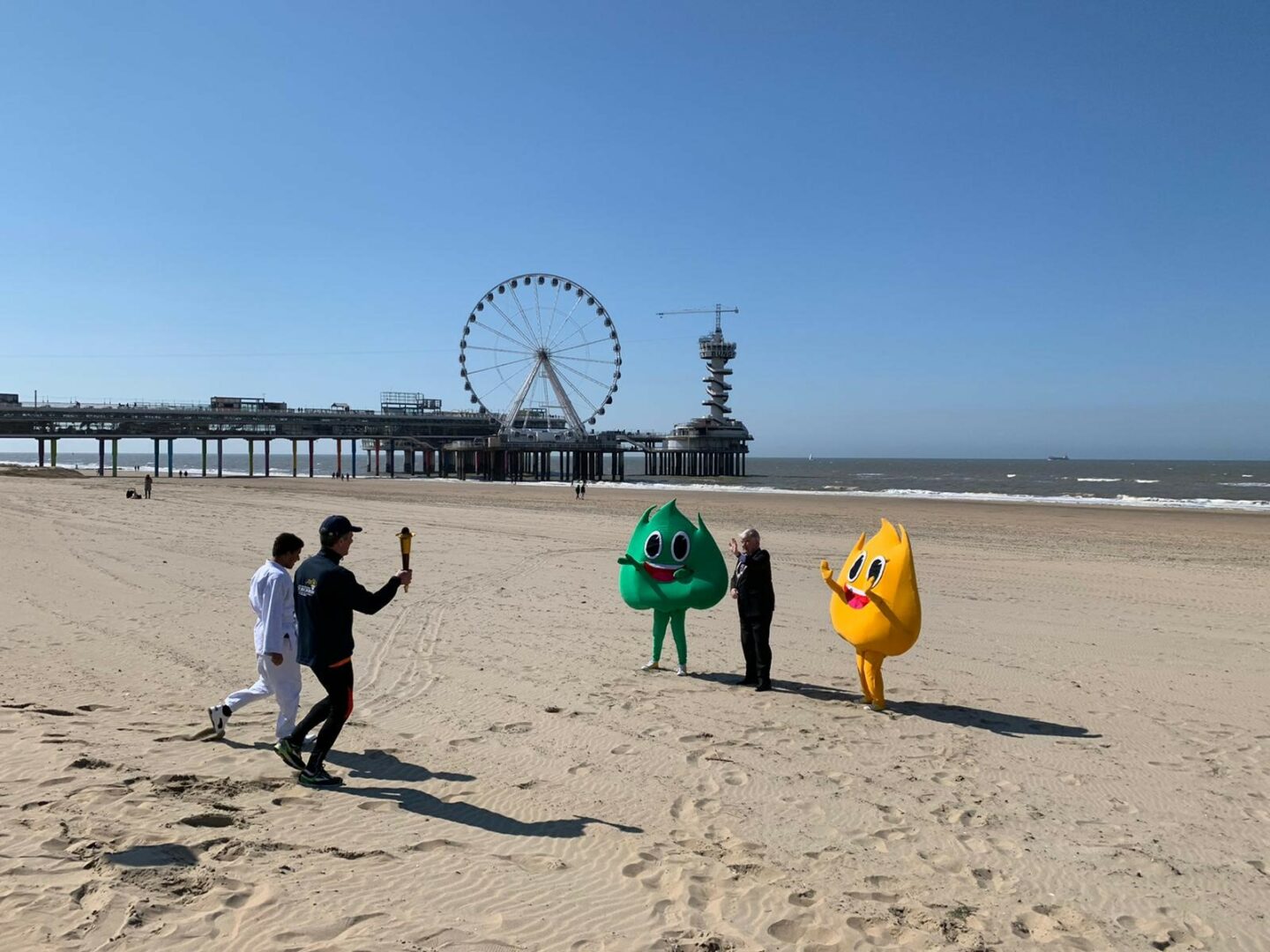 Meteen door naar Strand Noord op Scheveningen. Draag bij aan een filmopname ten behoeve van de Nationale Spelen 2021 van de Special Olympics (SONS2021). Deze spelen zijn het grootste multi-sportevenement voor mensen met een verstandelijke beperking in Nederland. Eigenlijk stond het evenement gepland voor 2020, maar de Spelen zijn nu officieel verplaatst naar 11-13 juni 2021 (als de maatregelen van het kabinet dat tegen die tijd ook toelaten). Brandweermedewerkers lopen met de ‘Flame of Hope’ door onze stad en eindigen bij het Sportcampus in het Zuiderpark waar zij het vuur voor de Special Olympics ontsteken. Ook maakt het projectteam filmopnames met een aantal topsporters, de G-sporters (=gehandicaptensporters), de mascottes Vuur en Vlam en de stichting Torchrun. Ter hoogte van de Pier begeleiden Annelies van der Knaap (beleidsmedewerker sport) en Eva de Koning (projectlid Special Olympics) G-sporter Tobi in zijn judo uniform en mij richting het strand. Tobi is 13 jaar oud en één van de ambassadeurs voor SONS2021. Op het strand vindt de opname plaats. Leggen aan het eind samen de eed af: ‘Ik ga voor de overwinning, maar door mijn inzet ben ik al winnaar’. Zonder jas maakt de wind op het strand het frisjes …
