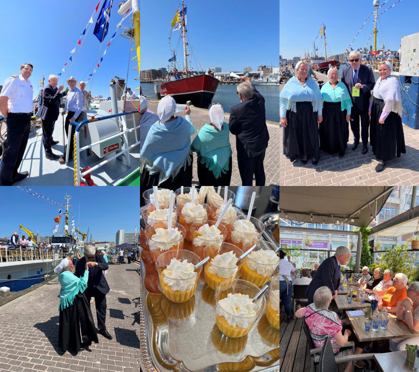 Begeef me tijdens de schorsing voor de lunch richting de Tweede Haven van Scheveningen. Hier vindt sinds 2004 de jaarlijkse vaartocht van oud-vissers boven de 65 jaar plaats. Naar vast gebruik op de vrijdag voor Vlaggetjesdag. De mannen varen uit en de vrouwen blijven aan wal. Betreed, na het laten bestempelen van mijn eigen Monsterboekje, het schip ‘De Fortuna’ van Rederij Groen en hijs de Scheveningse vlag. Doe dit alles onder het oog van Henk Grootveld en Henk Groen. Wens alle mannen een behouden vaart en verlaat het schip. Wens ook de oud-vissers aan boord van de ‘Trip Junior’ van Rederij Vrolijk een goede vaart en zwaai samen met de dames de twee schepen uit. Word vergezeld door de oude en nieuwe generatie Scheveningse dames. Ontmoet Lindsay de Jong. Ze maakt zich hard voor het behoud van de Scheveningse cultuur. Vergezel de dames richting Het Gouden Kalf en groet eigenaar Niels Schavemaker. In Het Gouden Kalf wordt een bingo georganiseerd, die in goede banen wordt geleid door dominee Maasland. Geniet zelf van een advocaatje met slagroom. Maak kennis met een aantal van de dames, waaronder mevrouw Leny uit Leidschendam. Zij was vroeger werkzaam bij de Bestuursdienst van de gemeente Den Haag en geniet nu van haar pensioen. Wens alle dames een prettige middag en zal een groot gedeelte vast morgen ook weer tegenkomen op Vlaggetjesdag.