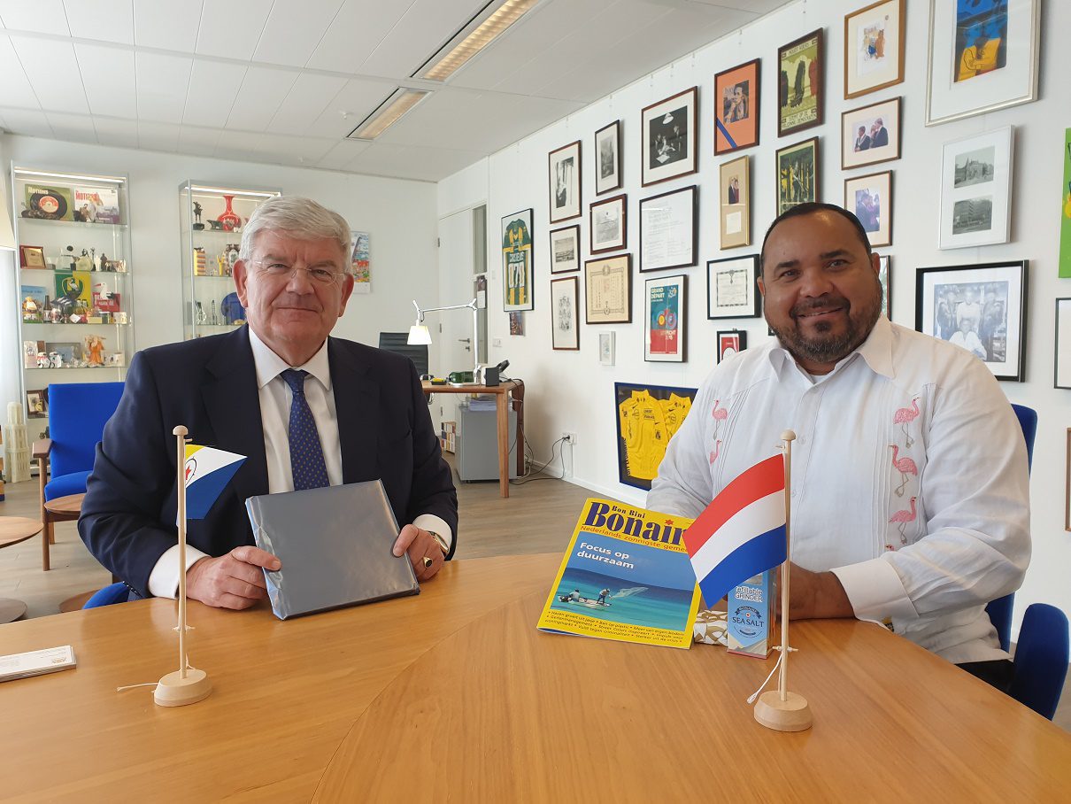 Praat kort bij met Edison Rijna, de gezaghebber van Bonaire (‘Nederlands zonnigste gemeente’). Sprak hem eergisteren nog. Krijg vrolijke manchetknopen van hem kado.