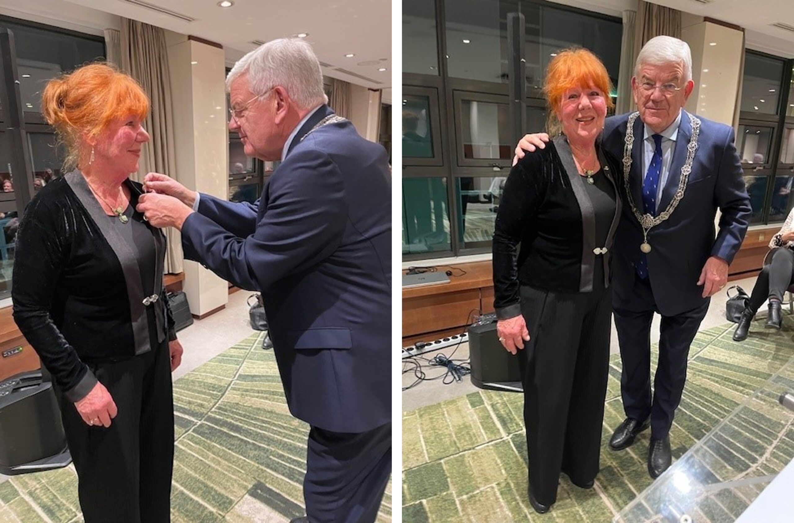 Wens de stichting van harte geluk met het 25-jarig bestaan en richt mij vervolgens tot Ellen Hal. Ze is verbaasd haar naam te horen en neemt elk woord over haar tot zich. Wanneer ik spreek over haar grootste kracht ‘oliemannetjes-capaciteit’ of ‘olievrouwtje?’ moet ze lachen. En wanneer ze hoort dat haar man ook iets over haar heeft verteld, gaan haar ogen op zoek naar hem. Reik Ellen namens het gemeentebestuur de Haagse Stadsspeld uit. Een groot applaus volgt. Ellen spreekt enkele gloedvolle woorden uit. Ze stond er en steelt de show met haar warme en liefdevolle tekst voor en over de stad en zijn inwoners. Stichting Leergeld Den Haag deelt een bericht over de erkenning op Instagram.