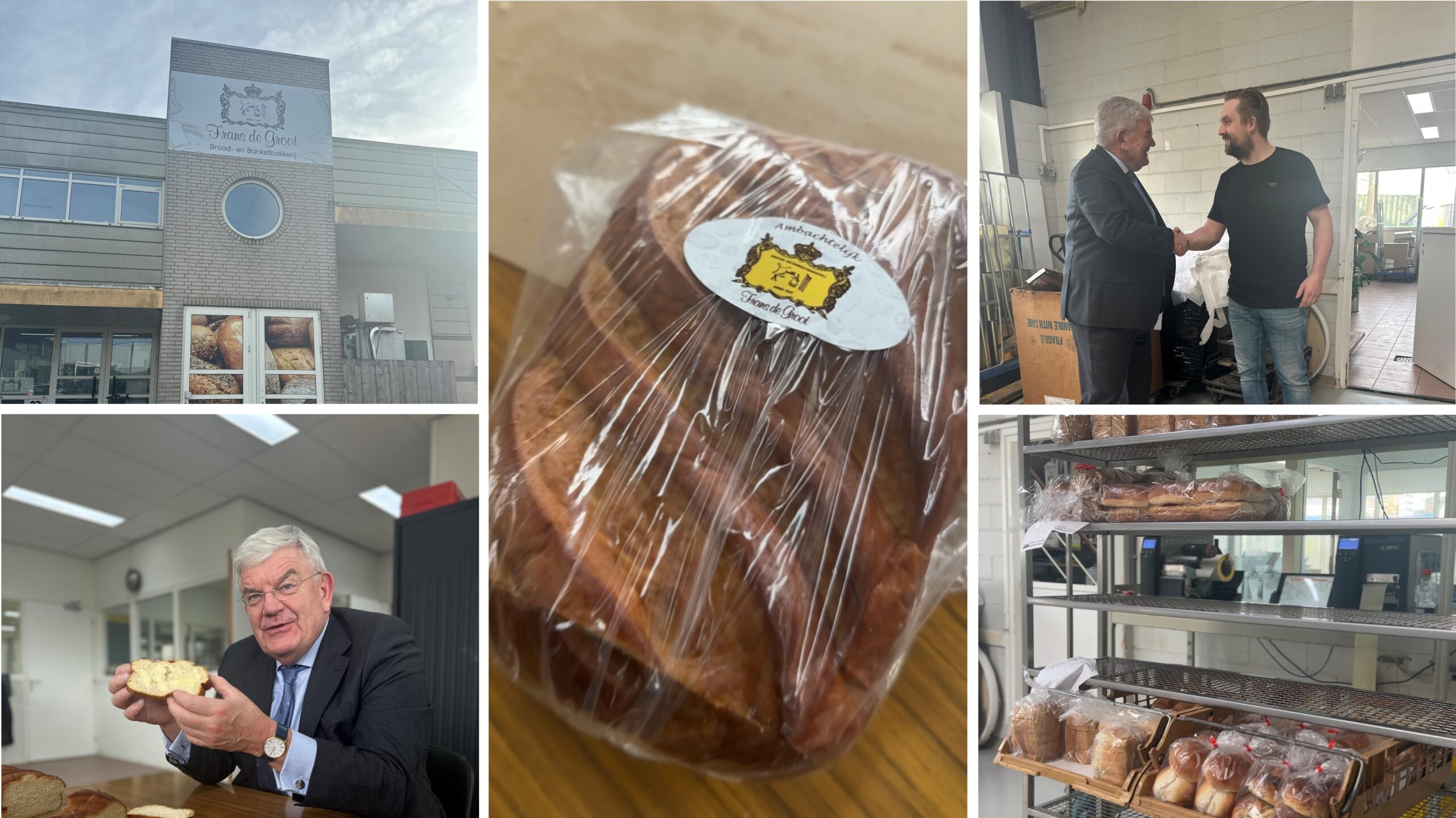 Ga samen met Sabine (communicatie) langs bij de groothandel in brood- en banket van bakker Frans de Groot aan IJssel in het Forepark. Deze Haagse zaak bestaat al sinds 1847. Deel met de eigenaar de liefde voor de ‘Duivekater’ – een traditioneel Noord-Hollands brood dat rond kerst, Pasen en Pinksteren wordt gegeten. Frans berichtte mede namens Michel dat hij graag weer eens dit brood wilde bakken en of ik dan een keertje zou willen langskomen. Bij deze. Op z’n kantoor praten we over de Duivekater, die hij sinds z’n bakkersopleiding niet meer had gebakken. Hij ging afgelopen week langs bij een kenner, z’n ambtgenoot Willem Putter (Uitgeest). Samen met Willem bakte hij het fraaie brood dat nu voor ons ligt. Samen met zijn medewerker Sylvia de Bruijn smullen we van een plak Duivekater (voorzien van een beetje roomboter).
