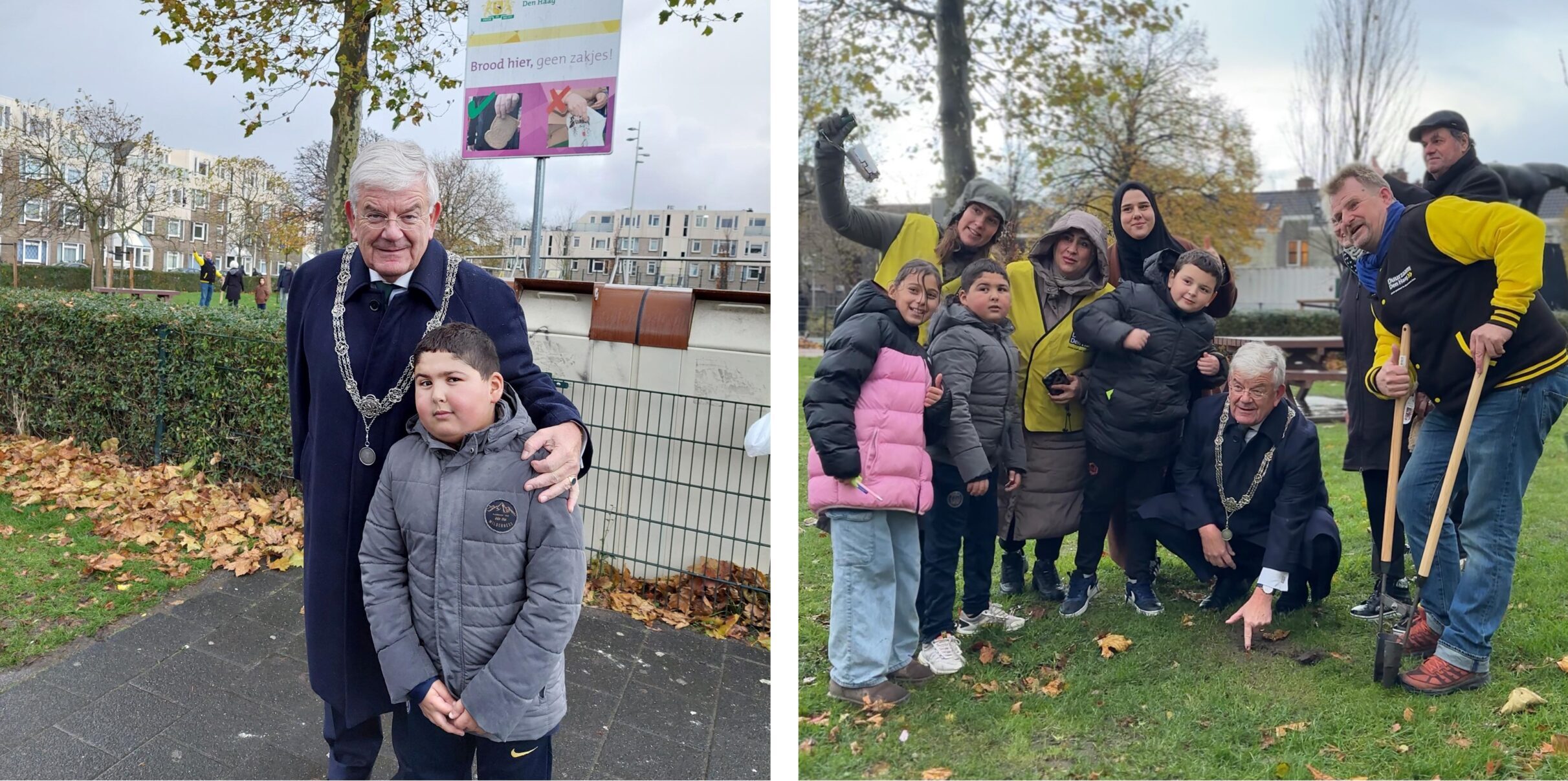 Plant na de onthulling in het kader van de vergroening van de wijk een bloembol. Doe dat tijdens de ‘plant-een-bloembol-actie’ waarbij ouders en kinderen uit de wijk bloembollen in het grasveld bij het plein planten. Mooi om te zien dat leerlingen van de nabijgelegen school, waaronder Marouan, hierbij betrokken zijn.