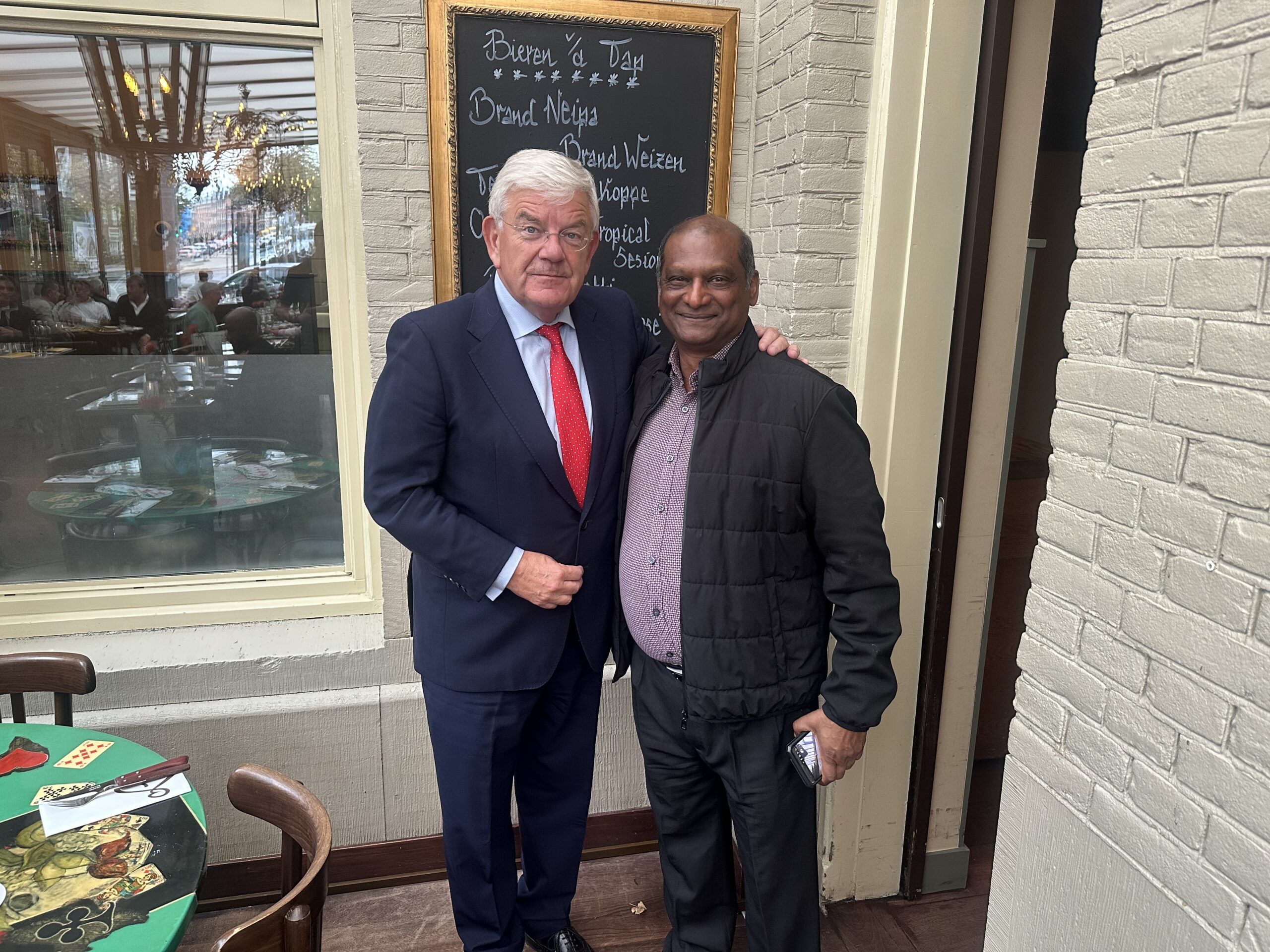 Begeef me aan het eind van de ochtend richting Amsterdam. Probeer me onderweg tevergeefs bij de volgende online afspraak te voegen. Blijkbaar zijn de telefoon en de iPad simultaan aan een update begonnen en het lukt niet die op tijd af te ronden. Waardeloos, maar het is even niet anders. Drink aan de Johannes Vermeerstraat (bij hem thuis) een kop koffie met voormalig ambtgenoot (Andel) en Eerste en Tweede Kamerlid Jan Nico Scholten en zijn echtgenote Anneke Scholten-Bruins Slot. De inmiddels 93-jarige Jan Nico was ooit de voorzitter van de landelijke werkgeversorganisatie waarbij ik als bestuurs- en directiesecretaris werkzaam was. We werkten in die periode nauw samen. De leeftijd bezorgt hem inmiddels enig fysiek ongemak, maar Jan Nico is nog helder van geest. “Ik wens je voortgezet succes”, zegt ie bij het afscheid. Wandel naar de nabijgelegen Loetje. Medewerker Freek begroet me. “Ja, ik ken u uit Amstelveen, want werkte vroeger bij het toenmalige restaurant ’t Deurtje aan Amstelzijde.” Heb een kort bijpraatmoment met good old Claude Bassuday. Wij studeerden in de jaren ’80 tegelijkertijd aan Cornell Law School in de Verenigde Staten. Claude bezocht voor zijn werk een conferentie in Londen en besloot aansluitend samen met zijn echtgenote een paar dagen in Amsterdam door te brengen. Morgenochtend vliegt hij terug naar Zuid-Afrika.