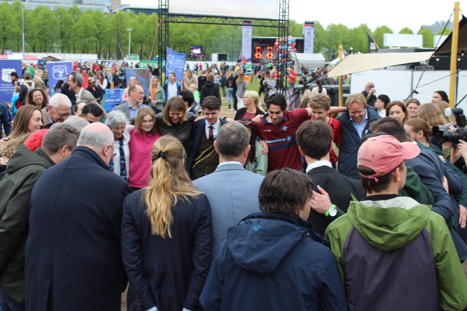 Betuig mijn respect voor datgene wat zij voor ons land hebben betekend in de afgelopen decennia. Wandel daarna naar de HI The Hague Student Experience, waar alle Haagse hoger onderwijsinstellingen samen met allerlei studentenverenigingen laten zien dat onze stad zich tot een bruisende studentenstad aan het ontwikkelen is. Voorzitter van HI The Hague en studentensportclub The Hague Hornets Louis Cumberbatch leidt me rond. Neem deel aan een bijzondere foto: in een kring met studenten en bestuurders van de Haagse hoger onderwijsinstellingen.