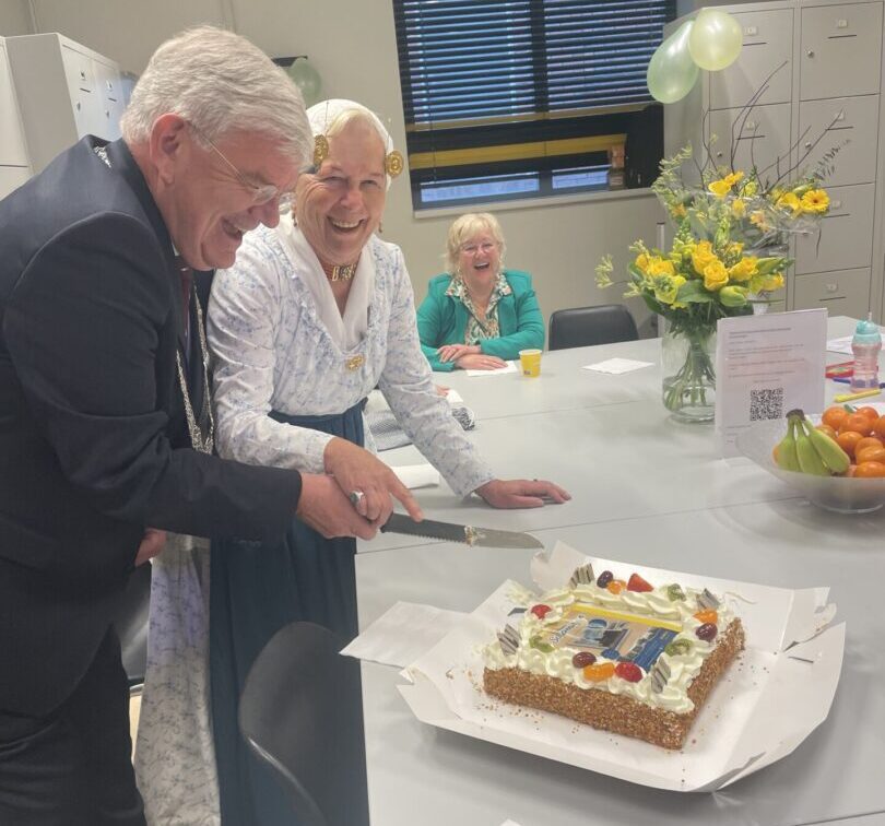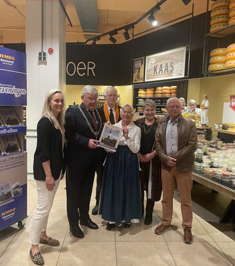 Start Bevrijdingsdag in het zwembad aan de Klatteweg. Vandaag heeft Lloyd dienst. Hang, terug thuis, de vlag uit. Ga in de loop van de ochtend naar de Jumbo aan de Van Bergenstraat op Scheveningen. Op verzoek van Anne-Marije van Schie, directieassistente van Jumbo Koornneef, neem ik aldaar het allereerste exemplaar van de tweede editie van een historisch verzamelalbum over Scheveningen in ontvangst. De eerste editie was twee jaar geleden zo’n groot succes dat een tweede editie niet uit kon blijven. Bedank met een korte toespraak de samenstellers van deze editie: Piet Taal, Evert de Niet en Sjaak Bonen. Complimenteer Pieter Goedbloed van de Local Loyalty Group en natuurlijk Jumbo zelve voor het mogelijk maken van het album. Ontvang uit handen van Rietje Staal, voor de gelegenheid in Scheveningse dracht, het eerste exemplaar. Het album ziet er prachtig uit. Verwacht dat dit weer net zo’n groot succes zal worden als de eerste editie. In mijn exemplaar zijn overigens alle plaatjes er al in geplakt.