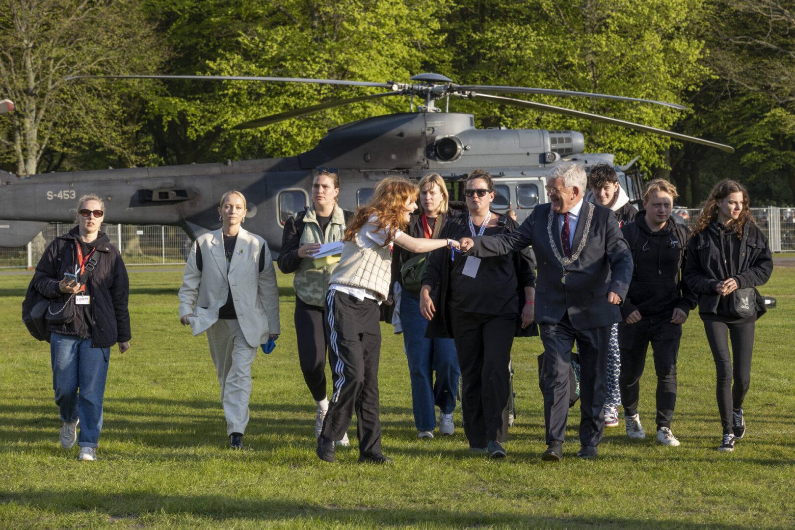 Voor mij persoonlijk is een ander hoogtepunt van het Bevrijdingsfestival een optreden van ‘Abba fever’. Geniet van het optreden. Heerlijk repertoire. Wandel, na een eenvoudige avondmaaltijd in de buitenlucht achter het podium op de plek waar de artiesten zich voorbereiden op de optredens, naar de plaats waar de helikopter met de Ambassadeur voor de Vrijheid Froukje landt.