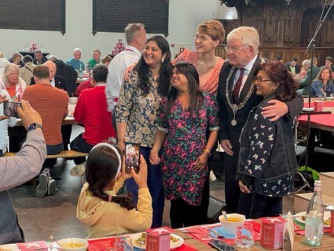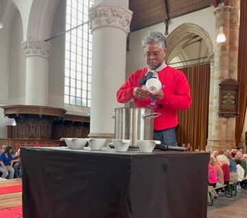 In een gezellig drukke Grote Kerk wordt rond het middaguur de Haagse Vrijheidsmaaltijd geserveerd. Francis Broekhuijsen presenteert het programma. Verzorg samen met tv-kok London Loy de aftrap.
