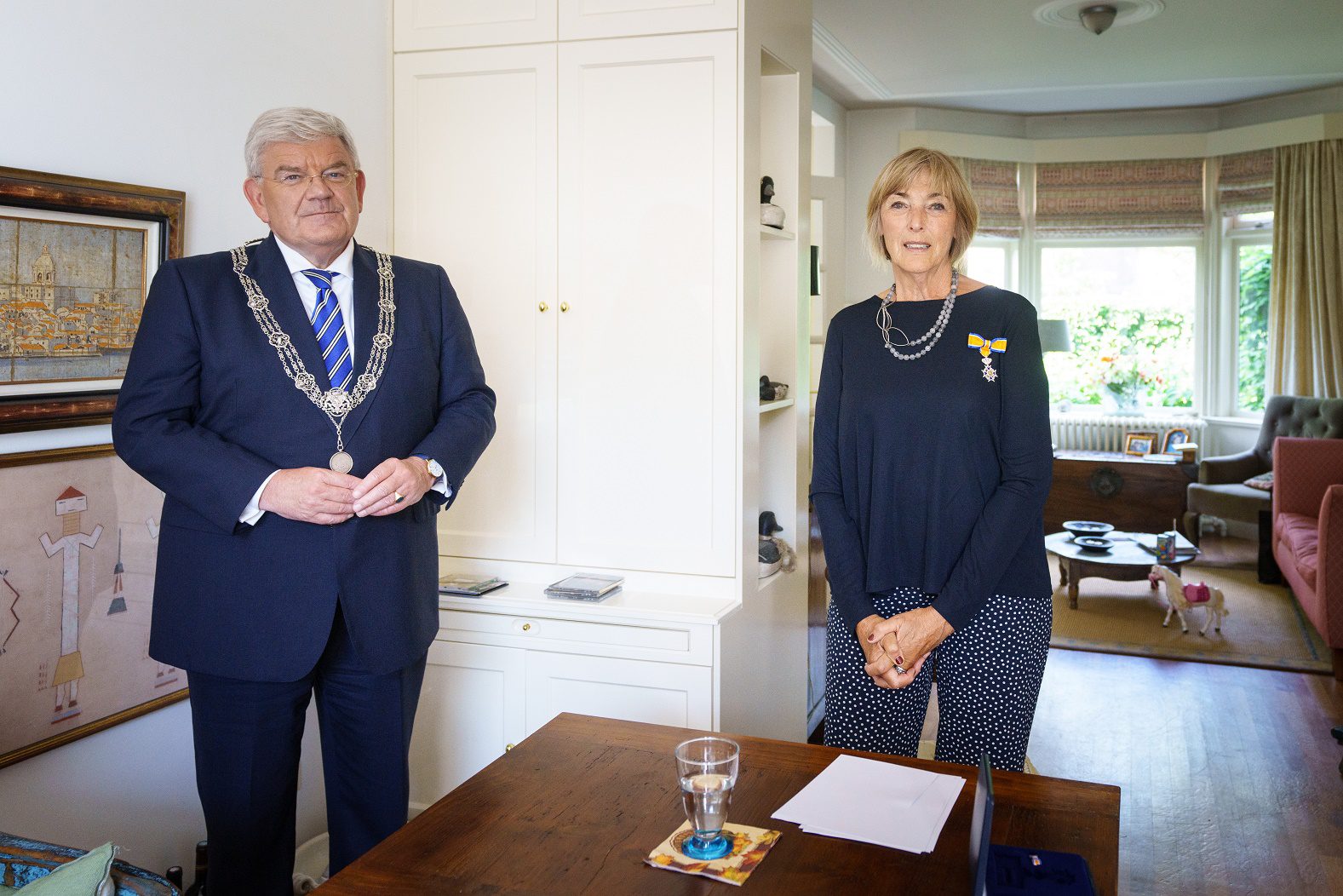 Bezoek in de loop van de middag samen met Sandra van der Zwan (kabinetszaken) in de Groningsestraat de hooggeleerde Gerrit Jan Kleinrensink. Gerrit Jan is met emiraat, maar gelukkig nog altijd actief op het vakgebied van de anatomie en neurowetenschappen. Echtgenote, kinderen en hun partners zijn aanwezig. Reik hem alsnog de versierselen uit die horen bij een Koninklijke onderscheiding. Hij kon er 23 april tijdens de ‘Algemene Gelegenheid’ helaas niet bij zijn.