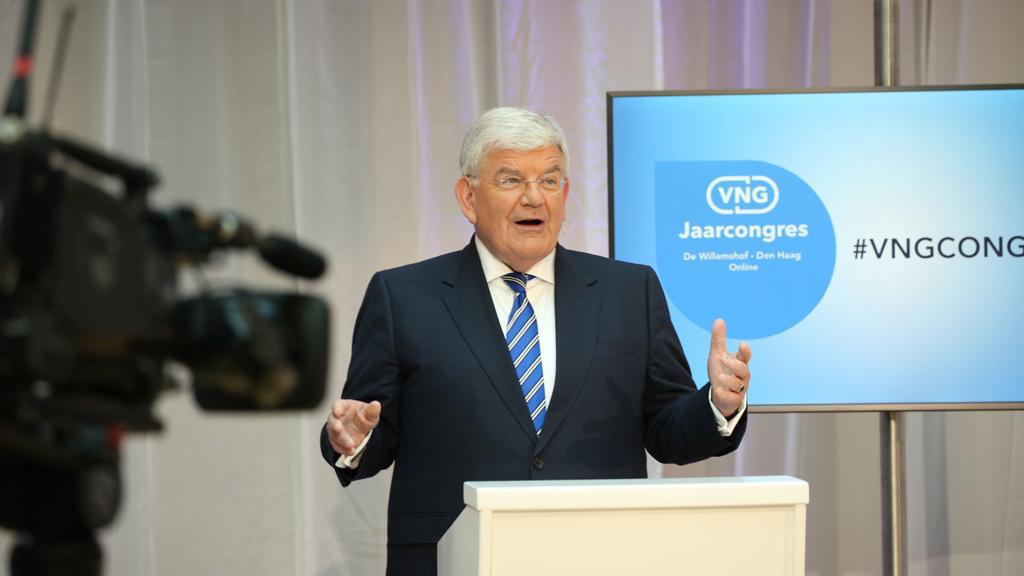 Meld me even voor achten in de Willemshof aan de Nassaulaan ten kantore van de VNG. Vandaag vindt het VNG-Jaarcongres plaats, gevolgd door de Algemene Leden Vergadering (ALV). Neem met dagvoorzitter Marcia Luyten en met Naut Kool, Luuk Heijlman, Sarah Leers en Angela de Jong (allen VNG) de logistiek door. Begroet onderweg naar de visagie onder andere mijn voormalige medewerker Maarten Beks en de bestuurscollega’s Hubert Bruls, Eric van Oosterhout, Sven de Langen, Lot van Hooijdonk en Geert van Soest. Maak kennis met de journalisten Özcan Akyol en Mathijs Bouman. Zwaai naar Femke Halsema (ambtgenoot Amsterdam). Zij dragen allemaal bij aan het congres. Open om 9.30 uur samen met Marcia het digitale congres buiten op de stoep van de Willemshof. Weer eens wat anders.