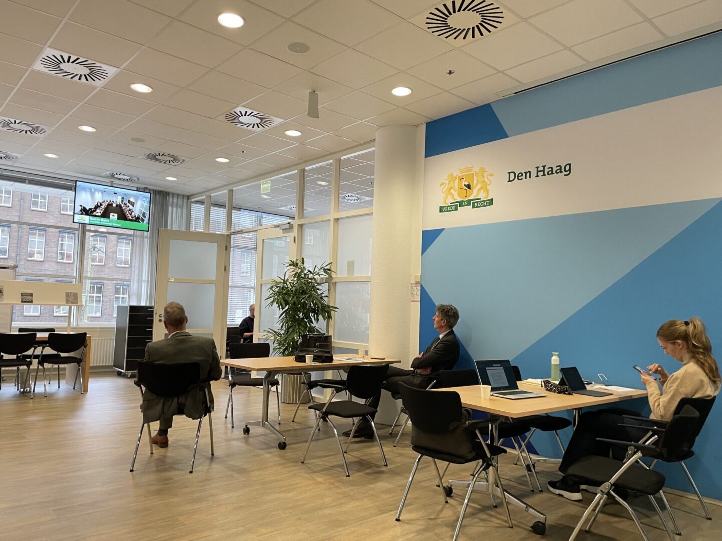 Begeef me rond twee uur ’s middags richting de commissie Perskamer. Dat is een relatief kleine en warme vergaderzaal. Niet echt aangenaam. Wacht buiten de zaal op m’n beurt.