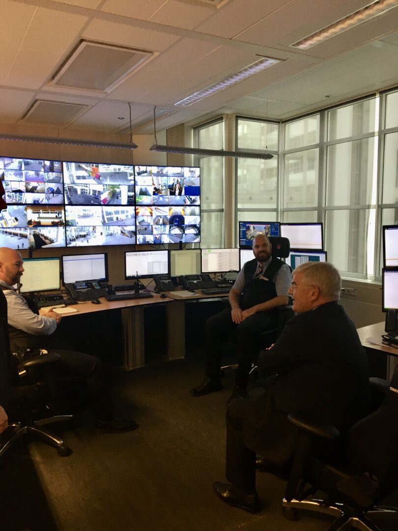 Maak ‘s middags samen met Wesley (kabinetszaken) en Theresa (communicatie) een rondje langs een aantal afdelingen in het stadhuis. Het zijn afdelingen die in direct contact staan met de inwoners van Den Haag. Leuk om de kans te krijgen met hen kennis te maken. Gluur, onderweg naar onze eerste stop, de meldkamer, even binnen in de kamers van de beleidsadviseurs en de collega’s van kabinetszaken. Op de gang en in de meeste kamers is het redelijk stil. Het grootste deel van de medewerkers is thuis aan het werk. Dennis Boersma, teammanager beveiliging, ontvangt me en neemt mij mee in de meldkamer. Zijn collega Rick vertelt over de werkzaamheden. In de meldkamer bedienen zij het toegangscontrolesysteem, het inbraakalarm en de bewakingscamera’s. Zij houden toezicht in het stadhuis en in vrijwel alle gemeentelijke gebouwen. De medewerkers hier zijn goed getraind en ervaren. Ben onder de indruk.