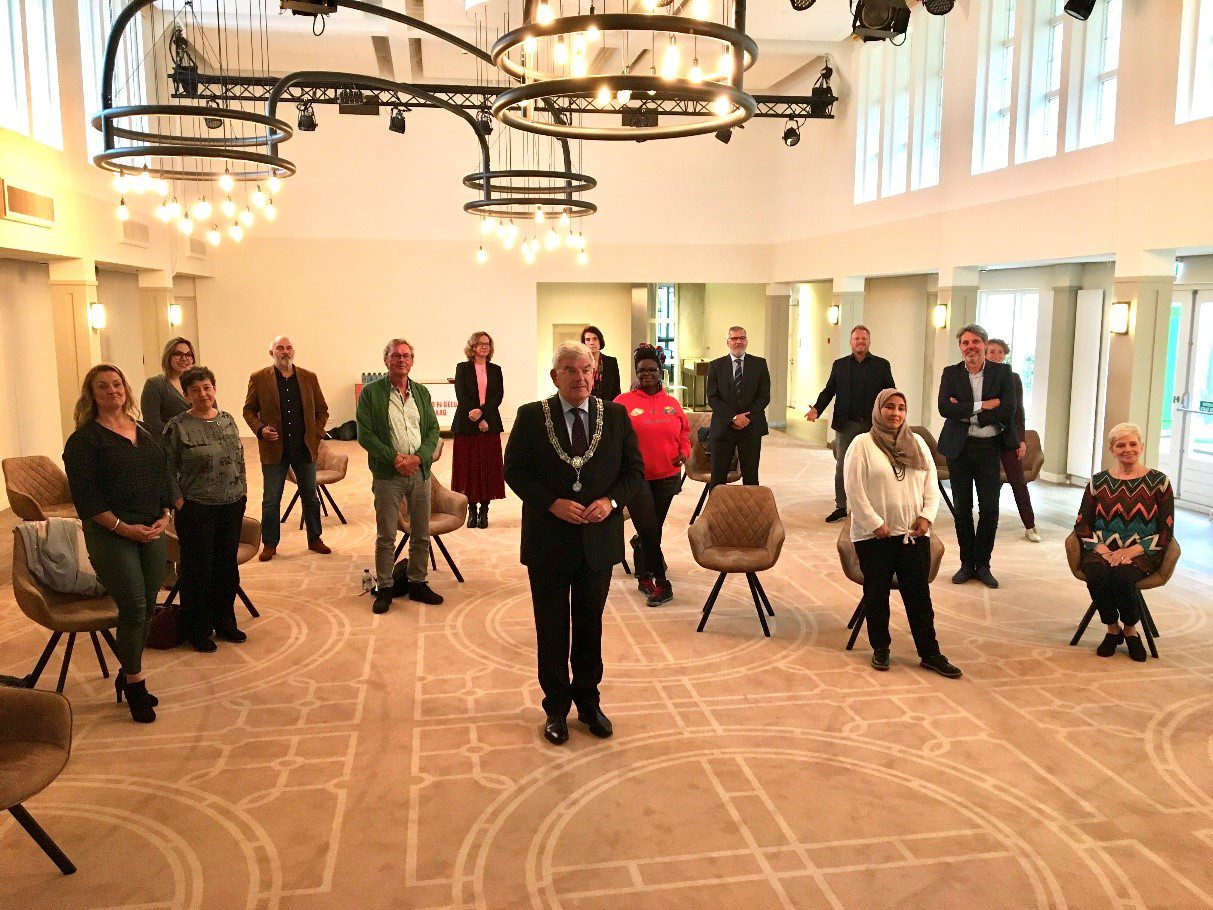 Sluit de dag af met een bijeenkomst in het Museum voor Beeld en Geluid aan de Zeestraat. Museumdirecteur, Tom de Smet, doet me in- en uitgeleide. Ben er op uitnodiging van Astrid Feiter van Stichting Haags Verhaal. Haags Verhaal is een initiatief waarbij mensen vanuit alle delen van de Haagse samenleving met elkaar in gesprek gaan. Ter gelegenheid van mijn installatie als burgemeester van Den Haag, hebben zeventien Hagenaars een videowens uitgesproken. Ga met een aantal van deze mensen in gesprek over de stad. Hebben het over mijn eerste, bewogen weken als burgemeester van Den Haag. Vraag wat zij mij willen meegeven als burgemeester. Hebben het vooral, in verband met de actualiteit, over corona en hoe de maatregelen in de verschillende buurten en wijken van Den Haag worden beleefd. Zeer inspirerend. Spreek af over een jaar opnieuw bij deze groep mensen langs te komen. Sluit de bijeenkomst af met een groepsfoto. Piet Gispen laat vakkundig zien hoe je zo’n foto maakt … Weet inmiddels dat Simone eerder vandaag een beroerde val maakte bij het werken in de tuin. Gelukkig heeft ze niets gebroken blijkt uit een foto die in het ziekenhuis is gemaakt. Mijn mobiele telefoon heeft kuren. De app-functie ‘slaat op hol’ zal ik maar zeggen. Morgen verder.