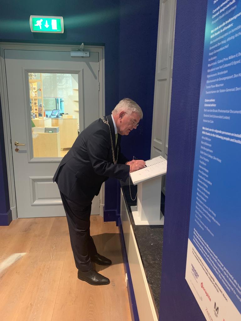 Gemeenteraadslid Richard de Mos informeert mij aan het begin van de middag over de stand rond de voorbereiding van de vorming van een nieuw college. Koppel terug aan raadsgriffier Lilianne. Loop aansluitend naar het Haags Historisch Museum. Dat ligt vlakbij. Om de hoek eigenlijk. Aan de Korte Vijverberg. Voor de allereerste keer begeleidt Carola mij in haar nieuwe functie bij kabinetszaken. Museumdirecteur Tjeerd Vrij begroet me bij de voordeur. Krijg een toelichting op en rondleiding door de twee tentoonstellingen. ‘Macht, 800 jaar Binnenhof’ is een interactieve tentoonstelling over de historie van het Binnenhof als strijdtoneel van de macht. Een bijzondere Haagse vrouw staat centraal in de tweede tentoonstelling ‘Fotograaf Alexine Tinne – haar wereldbeeld’. Ze reisde met haar hele huishouding en huisraad rond het Middellandse Zeegebied en Centraal-Afrika als eerste vrouwelijke ontdekkingsreiziger en fotograaf. De schrijver J.G. Kikkert maakte een boek over haar leven (‘Een Haagsche dame in de Sahara’). Zijn zoon Martin deed me het boek ooit kado. Heb het gelezen. De tentoonstelling was dus eigenlijk een soort van hernieuwde kennismaking. Schrijf in het gastenboek en neem afscheid.