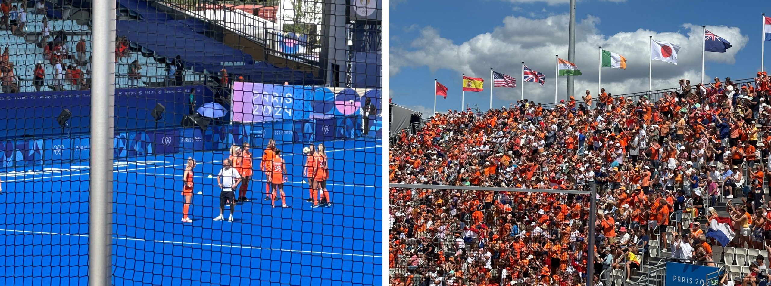 Beetje langer geslapen dan tot nu toe. Lopen rond half elf met z’n zessen naar de boulangerie. Drink een ‘Americano’ en eet een stokbroodje met ham en kaas. Reizen met tramlijn T2 naar La Défense. Gaan van daaruit met RER-lijn L naar Asnières sur Seine. Daar stappen we over op RER-lijn J die ons brengt bij het Stade Yves-du-Manoir waar de Nederlandse hockeydames vanmiddag om twee uur tegen Argentinië hun halvefinalewedstrijd spelen. Het is er druk en gezellig. Zien veel oranje. En ook een aantal lieve bekenden. Zwaai naar Eline (in het dagelijks leven mijn chef kabinet) en Laurens en hun gezin en naar Jan (ooit mijn woordvoerder) en Saar en hun beide vaders (“Ja, we heten allebei Jan”).