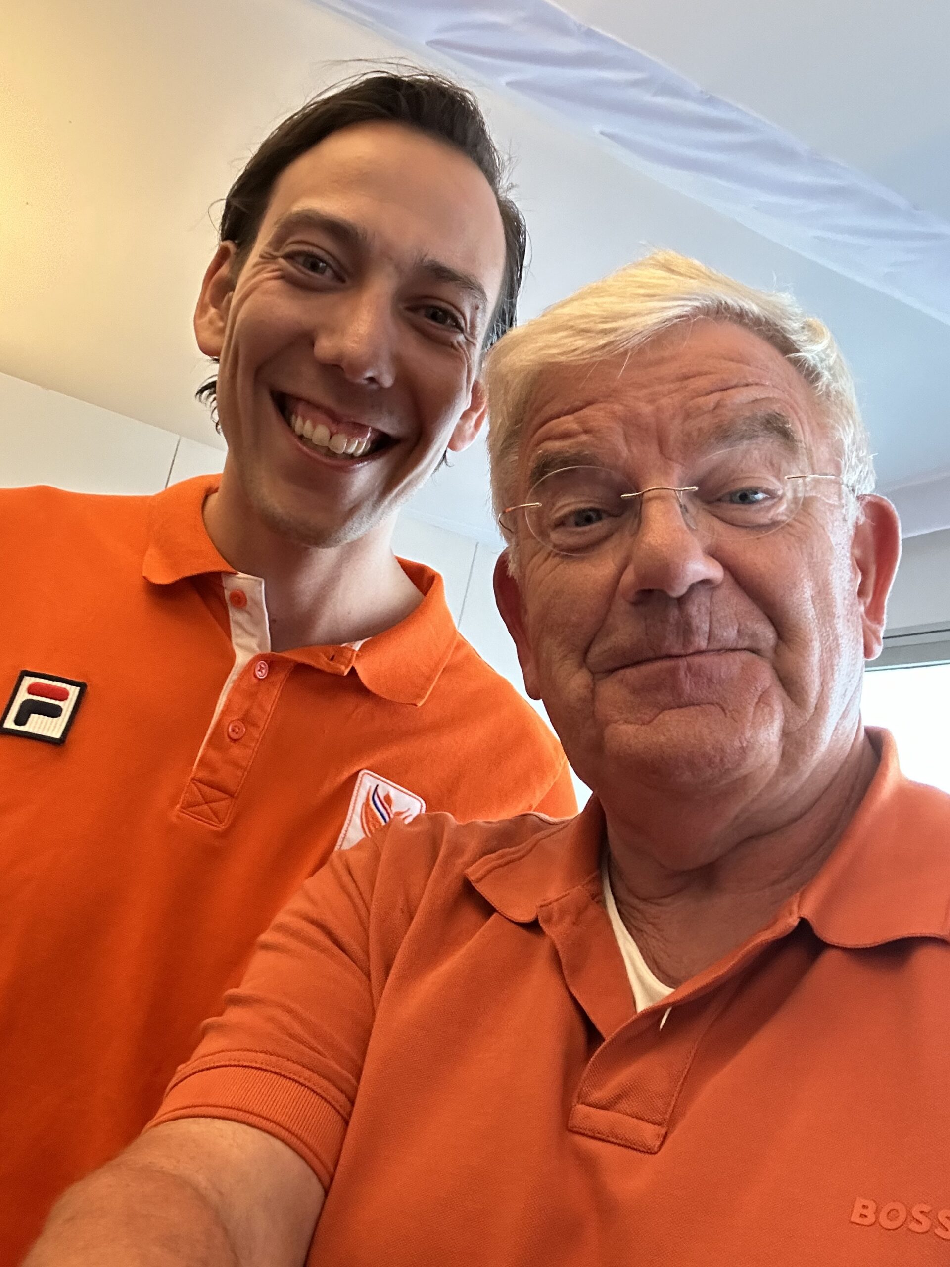Bij de ingang van het TeamNL Huis begroet de staatssecretaris van Jeugd, Preventie en Sport, goede bekende Vincent Karremans, ons allerhartelijkst.