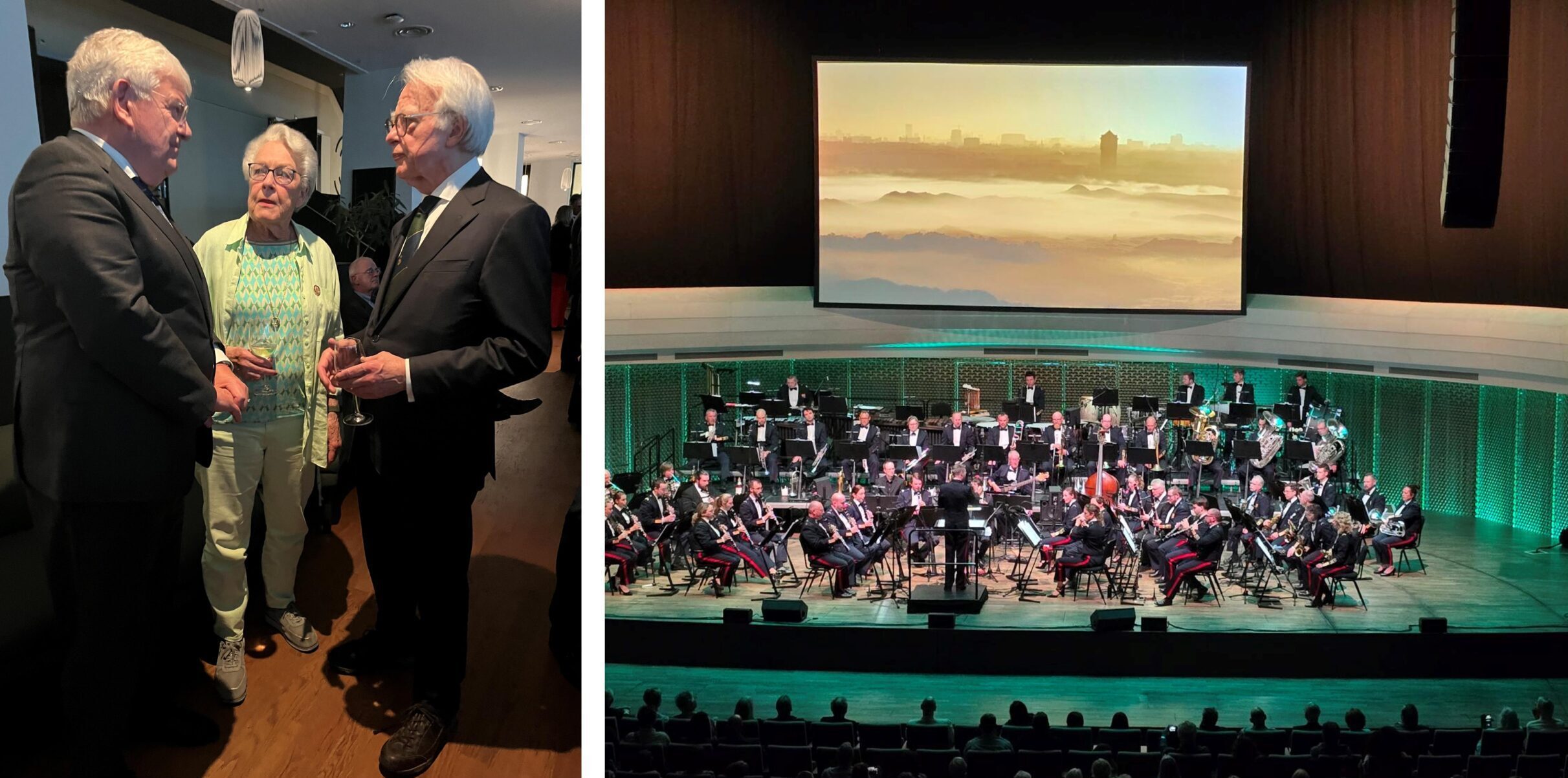 Simone heeft vanavond verplichtingen op het zweefvliegveld in Terlet. Stap zelf samen met kabinetschef Eline op de fiets richting Amare. Daar organiseert de gemeente samen met de Garderegimenten Grenadiers en Jagers, Fuseliers Prinses Irene en de Regionaal Militair Commandant West-Midden het jaarlijkse herdenkingsconcert ‘Slag om de Residentie’. Een muzikaal eerbetoon aan de Slag om de Residentie (10 mei) en de bevrijding van Den Haag (8 mei). Treed samen met Regionaal Militair Commandant West-Midden (tevens plv. Gouverneur der Residentie) Larry Hamers op als gastheer. Begroet bij aankomst de kabinetsmedewerkers Camilla en Sandra die deze bijeenkomst samen met Defensie hebben georganiseerd. Begroet een groot aantal bekenden tijdens de voorontvangst. Verwelkom net als kolonel Hamers de aanwezigen. De Koninklijke Militaire Kapel ‘Johan Willem Friso’ onder leiding van majoor Frans-Aert Burghgraef trakteert ons vervolgens op een aardig programma. Voor de pauze met een ontroerend verhaal over het jonge Joodse stelletje Ellis en Bernie en hoe het hen verging tijdens de oorlogsjaren, met bijdragen van de solisten Gaia Aikman en Ruben Hein. Herman van der Zandt weet het verhaal op een prachtige manier aan de zaal over te brengen. Het tweede gedeelte van het programma is net iets ‘luchtiger’ met onder andere een ode aan Haagse artiesten en met ‘Oh Oh Den Haag’ ter afsluiting. Zit naast Madeleine Hemmes op het balkon.