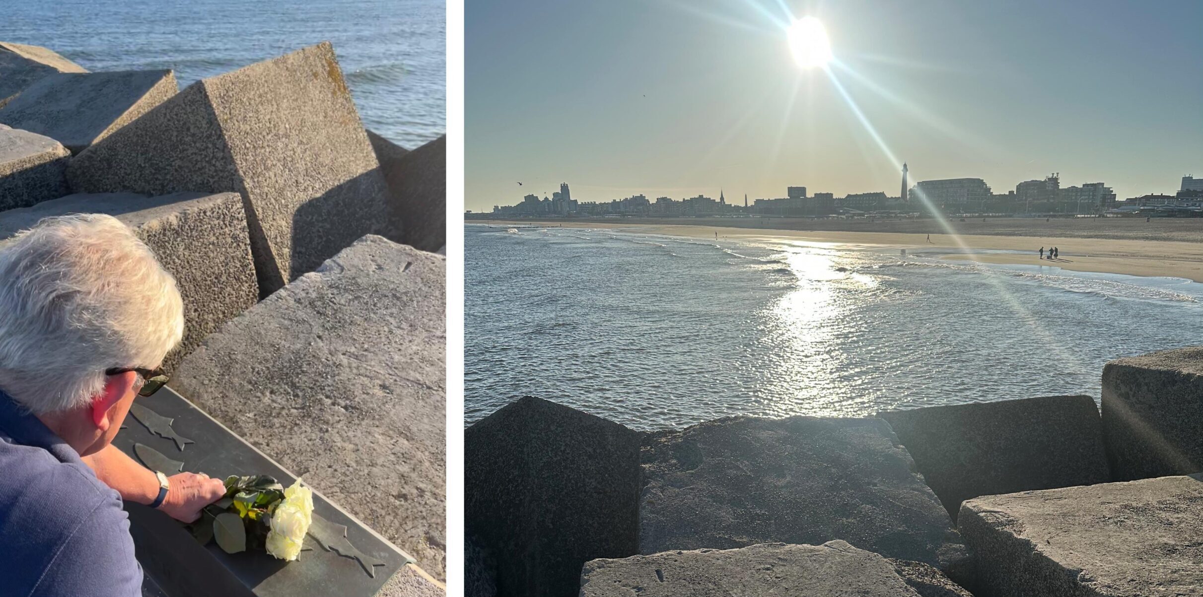 Stap zondagochtend even voor zevenen (opnieuw) op de fiets. Ga samen met chef kabinet Eline richting het Noordelijk Havenhoofd aan de kust. Vandaag is het vijf jaar geleden dat vijf surfers bij de Scheveningse kust zijn omgekomen. Wij hebben zojuist in mijn keuken vijf witte rozen van een groengeel lint voorzien. Leg de witte rozen neer bij de plaquette van de Zandvoortse kunstenaar Paul Jansen. De haringen uit de Scheveningse vlag waren een inspiratiebron.