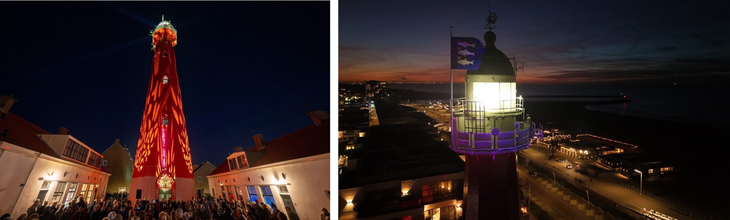 Krijg bij de vuurtoren een kopje thee. Het wordt fris. Maak kennis met Adri de Groot, directeur netwerkmanagement bij Rijkswaterstaat en diverse bewoners en nazaten van de vuurtorenwachters. Stadsdeelwethouder Saskia Bruines sluit aan. Er is dans van Het Danskwartier Den Haag onder leiding van Janine van den Heuvel en er is zang van de Zingende Zeelui (“Varend naar huis”). Spreek, net als Adri, het grote aantal belangstellenden toe. Het is inmiddels pikdonker en ceremoniemeester Pim Markering schijnt met een lampje bij tijdens de toespraken. Neem uit ‘handen’ van Adri een kado in ontvangst: voor het eerst in zestig jaar schijnt de vuurtoren vanavond over zee én het dorp. Een prachtig symbolisch cadeau.