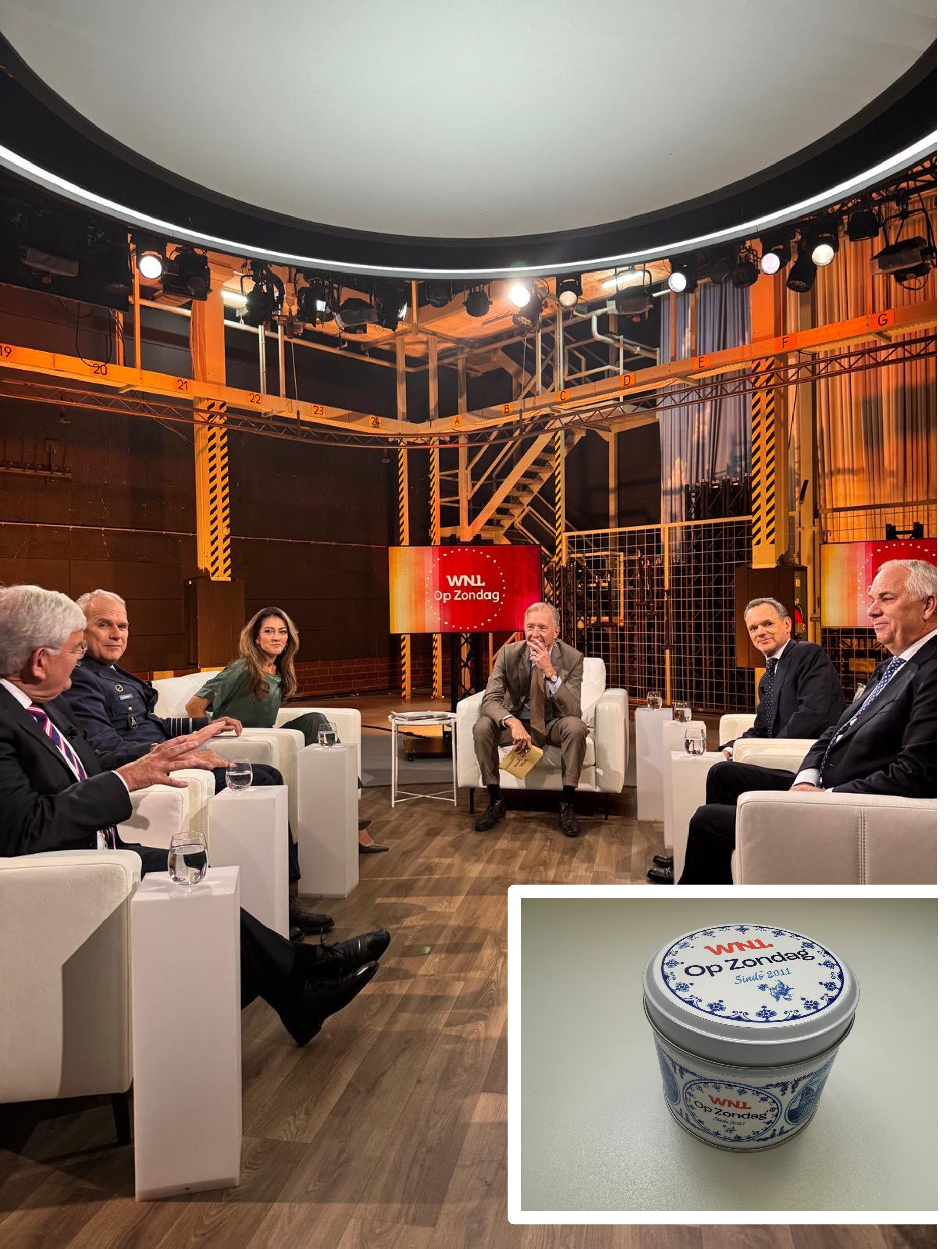 Begeef me met hen richting Hilversum. Ben in het Mediapark te gast bij WNL op Zondag van Rick Nieman die een thema-uitzending maakt over de NAVO-top. Tref minister van Buitenlandse Zaken Casper Veldkamp, VVD-fractievoorzitter in de Tweede Kamer Dilan Yeşilgöz, Nationaal Coördinator Terrorismebestrijding & Veiligheid (NCTV) Pieter-Jaap Aalbersberg en generaal en commandant der strijdkrachten Onno Eichelsheim. Gastvrouw Sam ontvangt ons met een kop koffie en neemt na afloop afscheid met een blikje stroopwafels.
