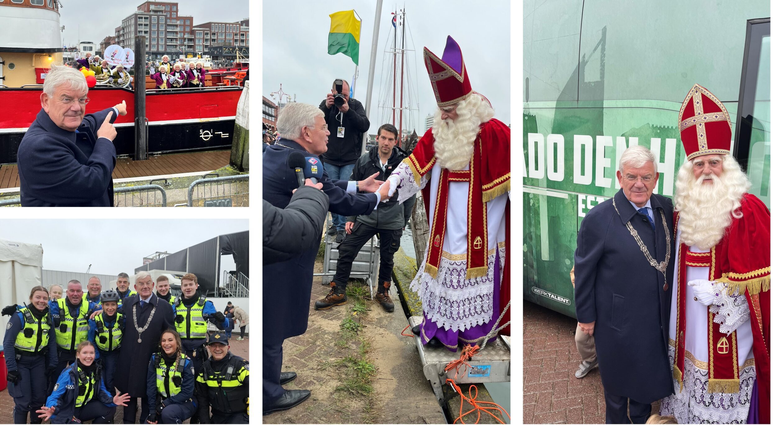 Maak een vroege ochtendwandeling in de wijk. Het is zeven graden en droog. Groet gemeenteraadslid Koen Bom die een hondje aan het uitlaten is. “Ja, ik woon hier sinds een half jaar”, vertelt ie. Begin, terug thuis, aan de stukken uit de twee bomvolle loodgieterstassen van het Stadhuis. Ben tegen half elf in de Tweede Haven. Verwelkom aan de Dr. Lelykade (aan de kant van de Zeesluisweg) samen met de Spaanse ambassadeur H.E. Consuelo Femenía, in aanwezigheid van vele duizenden kinderen en hun (groot)ouders aan beide kades van de haven, Sint Nicolaas en zijn pieten. Het is – ondanks het weinig aantrekkelijke weer – een vrolijke boel. Bij mijn aankomst staat Sints Vrolijke Lakeien Bende al te zingen en zwaaien: “Dag, burgemeester, daaag, daaag”. Sta net voordat de goedheiligman binnenvaart Bob Brinkman en vervolgens Fred Zuiderwijk, beiden van Omroep West, te woord. Ze vragen wat ik in mijn schoen hoop te krijgen. “Nog meer liefde in Den Haag en een lekker stukje speculaas. Daar word ik blij van.” Na de verwelkoming op het podium begint de Goedheiligman op het paard aan zijn traditionele rijtoer door Den Haag. Neem bij de spelersbus van ADO met koude handen en idem voeten afscheid van de Sint en wens hem een behouden vaart (op z’n paard). Begroet de leden van het Bike-team van het team handhaving. Zij zijn tot vanavond bezig om de stoet in goede banen te leiden. Lange dag voor hen, maar mooi en belangrijk werk. Chapeau.