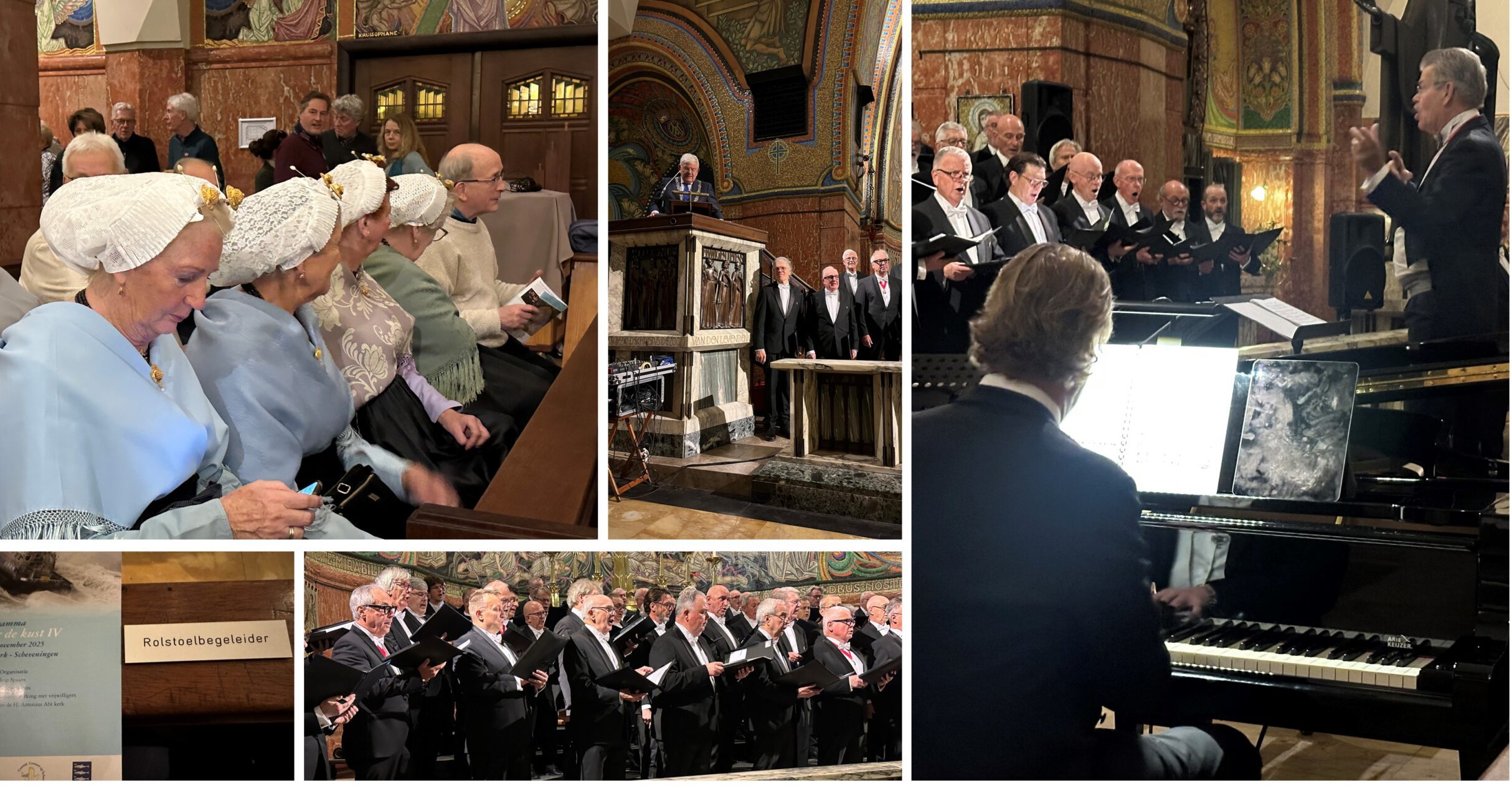 Moet meteen door naar een concert (‘Terug naar de kust IV’) van de Koninklijke Zangvereniging Mastreechter Staar. Het concert vindt plaats in de Antonius Abt kerk aan de Scheveningseweg. Simone is erbij. Jaap en Dany Spaans begeleiden ons bij binnenkomst. Krijg een plaats op het bankje van de ‘rolstoelbegeleider’. Als dirigent treedt op Hennie Ramaekers en Michiel Ballhaus zorgt voor de muzikale begeleiding op de piano. Verwelkom de aanwezigen in de bomvolle kerk. Geniet van het concert. De toegift – het Scheveningse volkslied – wordt met luid applaus ontvangen (‘Dat is wat Scheveningen heeft, omdat dit Scheveningen leeft. De mooiste badplaats van het land, een parel aan het Noordzeestrand‘). Complimenteer Hennie na afloop met het concert (“Binnenkort word ik 80, dit geeft energie.”). Maak kennis met de sopraan Celesta da Vinci. Wat een geweldig talent. Wandel na afloop samen met Simone naar huis.