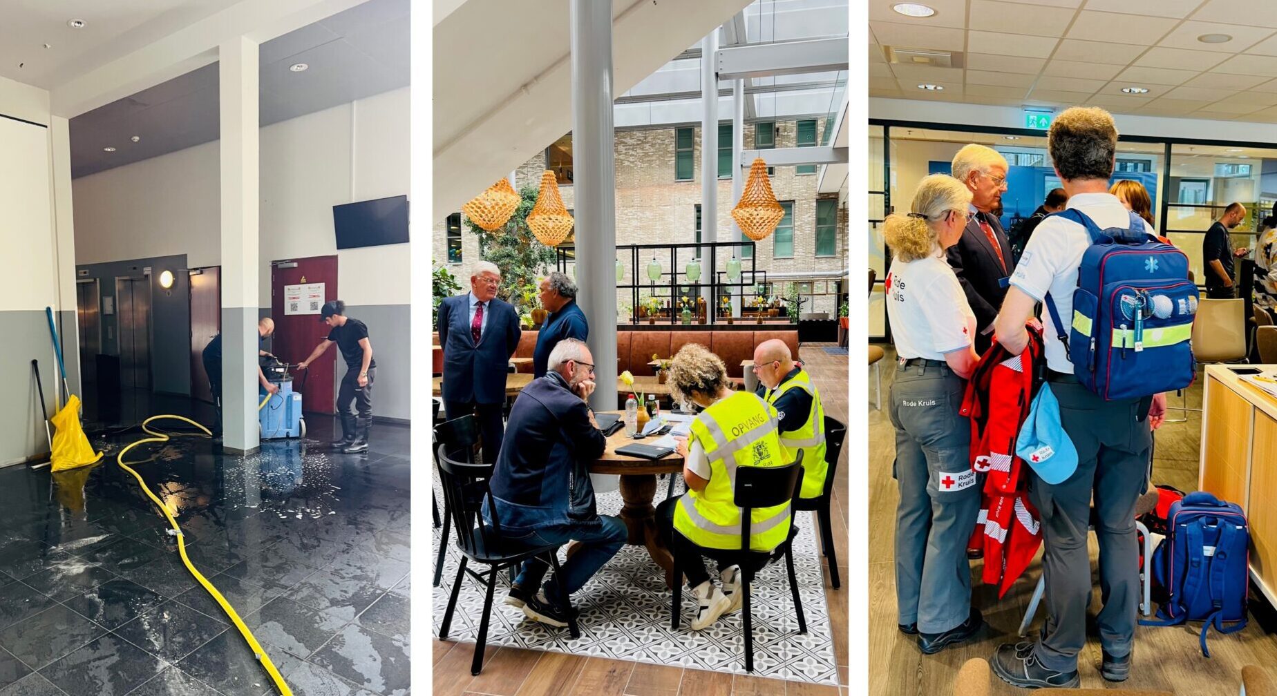 Heb een vol middagprogramma. Begin iets eerder – aan het eind van de ochtend. Las een bezoek in aan de Carolina van Nassaustraat. Vannacht bleek al snel dat de grote wateroverlast aanleiding was om ook de elektriciteit in het pand uit te zetten. Meteen volgde de ontruiming; tientallen bewoners, gezinnen met kleine kinderen ook, zijn vlot naar buiten geleid. Aan het Prinses Margriet Plantsoen bood het NH Hotel meteen onderdak: een schuilplaats, een ontbijtje en daarna voor wie dat nodig heeft een frisse hotelkamer om uit te rusten en op adem te komen. Ga er langs om de mensen die soms al vanaf vier uur vanochtend in touw zijn geweest te bedanken voor hun inzet. Ben onder de indruk van de schade die het water heeft aangericht; het pand is inmiddels tijdelijk onbewoonbaar verklaard. Spreek in het hotel de hulpverleners en de geschrokken bewoners en hun families. Velen zijn opgelucht dat ze vanmiddag, onder begeleiding en via het trappenhuis want de liften zijn buiten gebruik, even terug kunnen naar hun woning om de hoogstnodige spullen op te halen voor de komende dagen. Wens hen alle sterkte en dank onze medewerkers Bennie van den Brink en Marieke Sassen en vele andere collega’s voor hun adequate optreden.