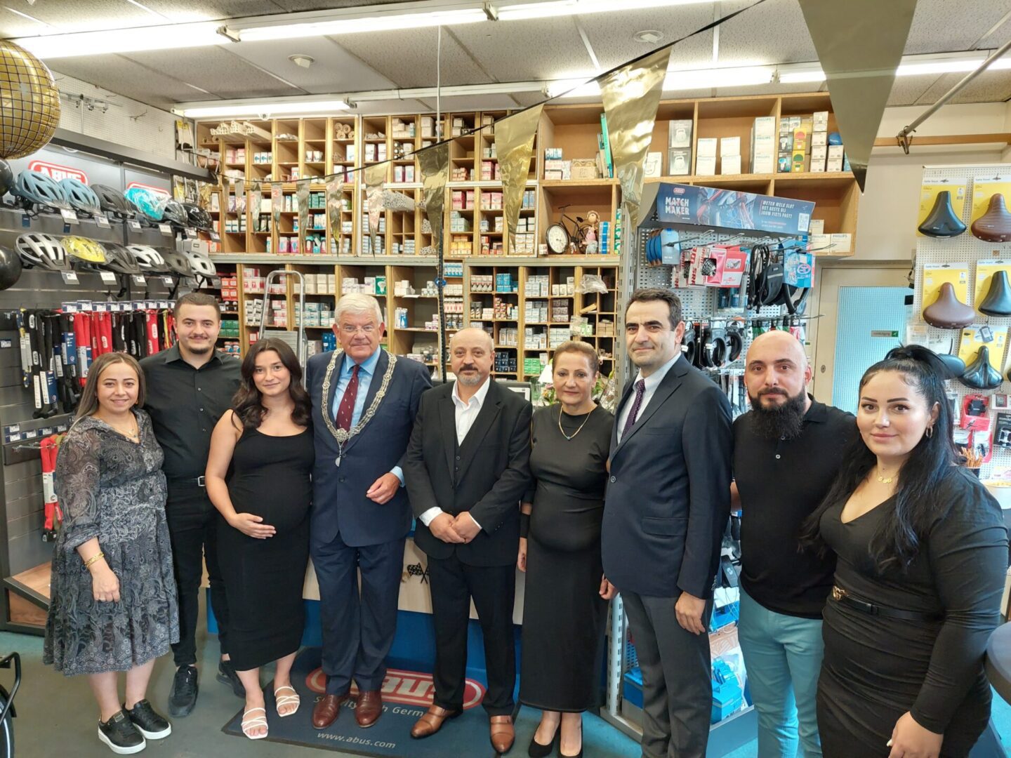 Loop daarna met Camilla (kabinetszaken) naar de Hooistraat voor het jubileum van ‘mijn’ fietsenmaker Özer (Eus) Sahin. De fietsenmaker nodigde me hiervoor uit toen ik mijn fiets aanbood voor de tweejaarlijkse onderhoudsbeurt. Hij heeft al 40 jaar ‘fietsplezier’, waarvan 30 jaar als eigenaar van de zaak aan de Hooistraat. Wens, vergezeld door de Turkse ambassadeur Z.E. Selçuk Ünal, meneer Eus van harte geluk. Maak kennis met zijn echtgenote, dochters en zijn zoon.