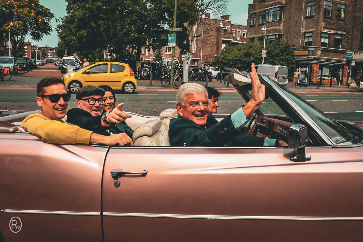 Steek wandelend de Marie Heinenweg over richting Parkoers. Ontmoet daar onder anderen voormalig nachtburgemeester en ‘Mister Parkpop’ René Bom, Henk Augustijn en motordichter Robert Meijer (‘MD’). Ook de kersverse stadsdeeldirecteur Escamp Petra Sevinga is van de partij. Voor René is het vandaag een emotionele dag. Op initiatief van Henk wordt een muurschildering, gemaakt door Roelof Schierbeek, onthuld. Voor mij is het een eer om hier bij te mogen zijn. Rijden gezamenlijk, in stijl met de roze Cadillac van Koen, richting de Vreeswijkstraat.