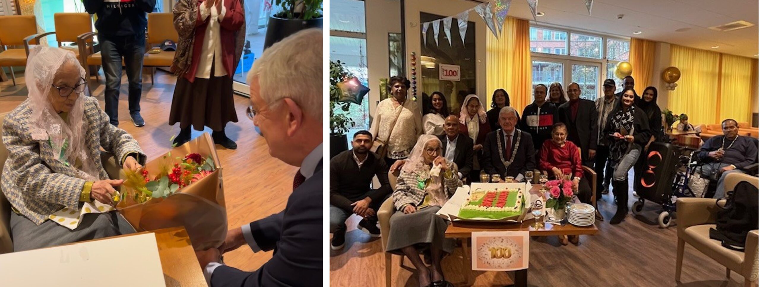 Wens Jagwantie Kanhai-Ganeshi van harte geluk met haar 100e verjaardag. Geboren in het Surinaamse Saramacca kwam ze in 1975 vlak voor de onafhankelijkheid van Suriname naar Nederland. Ze heeft een enorm rijk verleden met al zijn wel en wee. De eeuweling ziet er stralend, keurig en netjes verzorgd uit met gelakte nageltjes en zondagse kleren. Familieleden van heinde en verre zijn aanwezig, maar niet iedereen kan komen, daarvoor is de ruimte te klein vertelt haar zoon Anand. Het gezin telt 11 kinderen, 35 kleinkinderen, 38 achterkleinkinderen en 6 (!) achter-achterkleinkinderen. De eeuwelinge snijdt een enorme taart aan. Ze doet het met hulp van een kleindochter met verve. Maak kennis met de familieleden en neem afscheid.