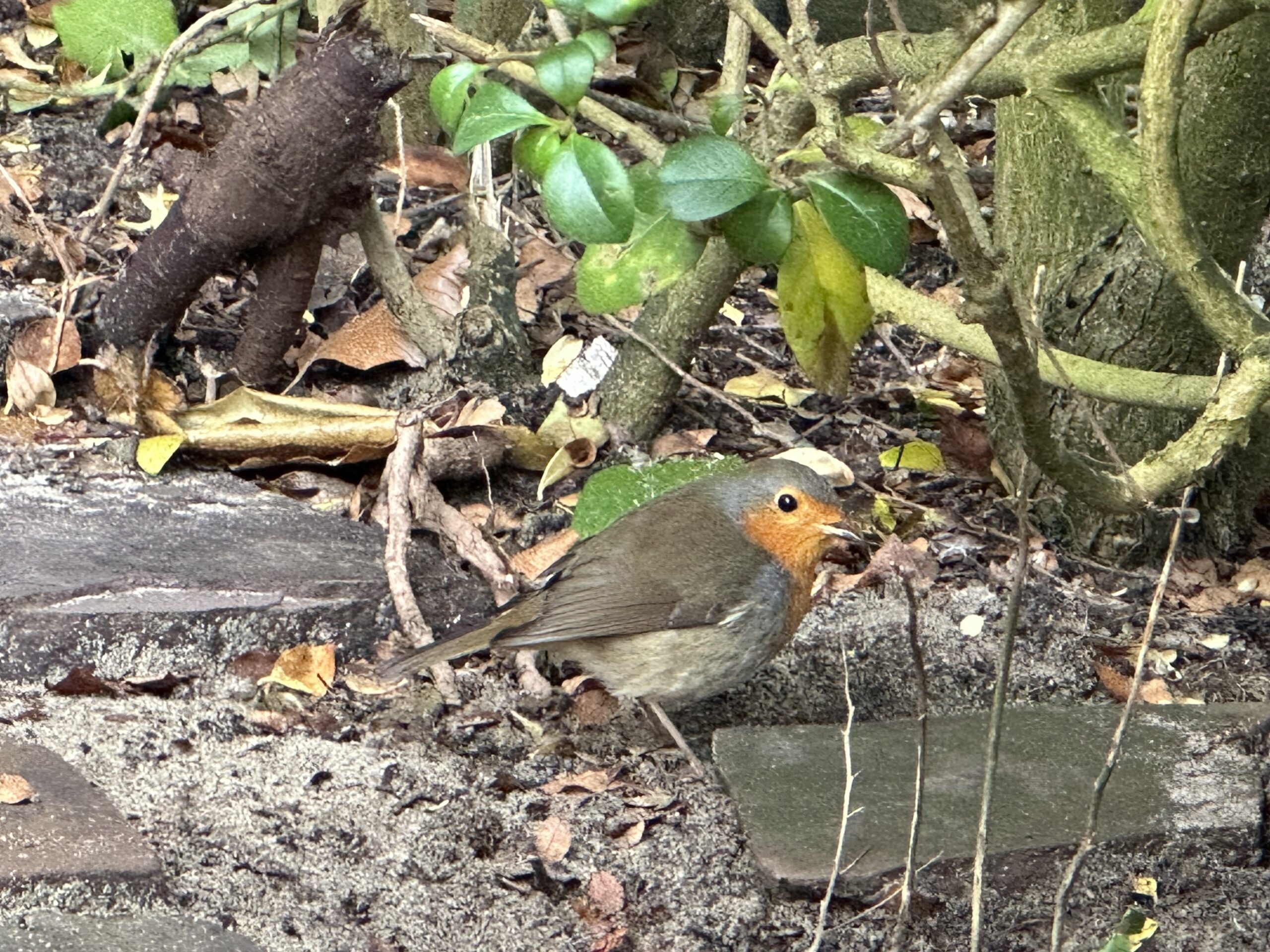 Ochtendwandel in alle vroegte in de wijk. Doe de was en de strijk. Fiets heen en weer naar de Frederik Hendriklaan voor een paar boodschappen. Breng stoomgoed naar Veldkamp. Verwijder, terug thuis, de bladeren uit m’n voortuin. Een roodborstje komt nieuwsgierig kijken.